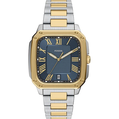 ANGEBOT Fossil Herrenuhr mit Edelstahlgehäuse, goldfarben, rechteckiges Zifferblatt mit römischen Ziffern.