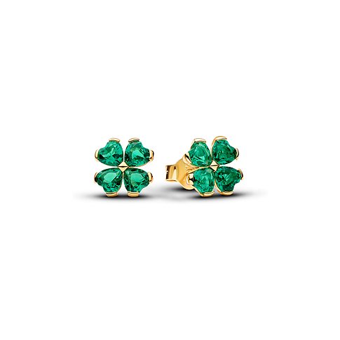 Pandora Creolen aus Metall mit grünen Kristallen.