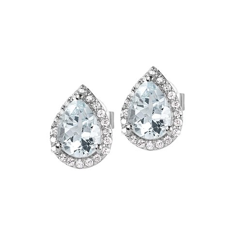 ONLINE EXKLUSIV Ein Paar Ania Haie Ohrringe aus 925er Silber mit runden Zirkonia, Nahaufnahme auf weißem Hintergrund.