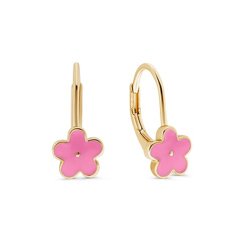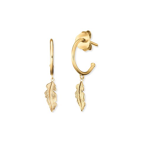 Zwei längliche, goldene 375er Gelbgold-Ohrringe, die seitlich leicht gedreht sind