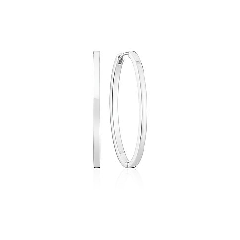 RECYCELTES SILBER Zwei glänzende, runde Ohrringe aus recyceltem 925er Silber von vorne, nebeneinander liegend.