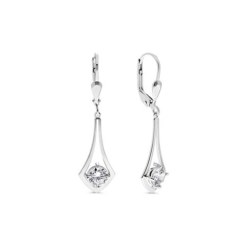 RECYCELTES SILBER Ein Paar glänzender Ohrhänger aus recyceltem 925er Silber, verziert mit funkelnden Zirkonia-Steinen.