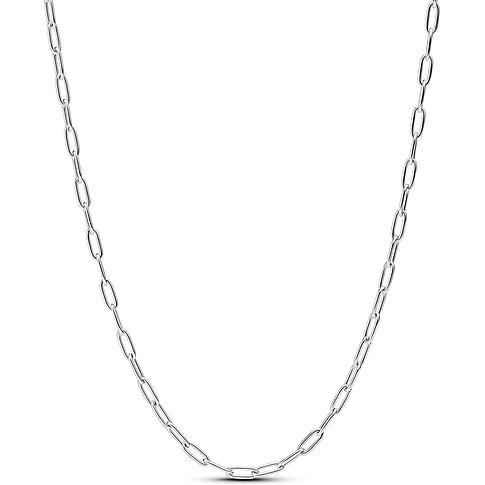 Nahaufnahme einer Halskette aus 925er Silber mit feiner Gliederkette, symmetrisch in U-Form drapiert.