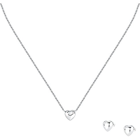 ANGEBOT Fossil Schmuckset aus Edelstahl mit Glasstein, Herzanhänger und Ohrsteckern.