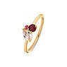 Rosenquarz, Rhodolit und Turmalin vereinen sich an diesem Farbsteinring zu einem einzigartigen, harmonischen Funkeln in Rosa, Rot und Weiß. Der tropfenförmige Rosenquarz bildet zusammen mit den beiden anderen, runden Farbsteinen eine Herzform. Ring und 3er-Krappenfassung aus 375er Gelbgold entfachen die volle Strahlkraft der leuchtenden Edelsteine. Tragen Sie diesen Ring mit der passenden Kette (Artikelnummer 88299035) oder kombinieren Sie ihn mit reinem Goldschmuck.