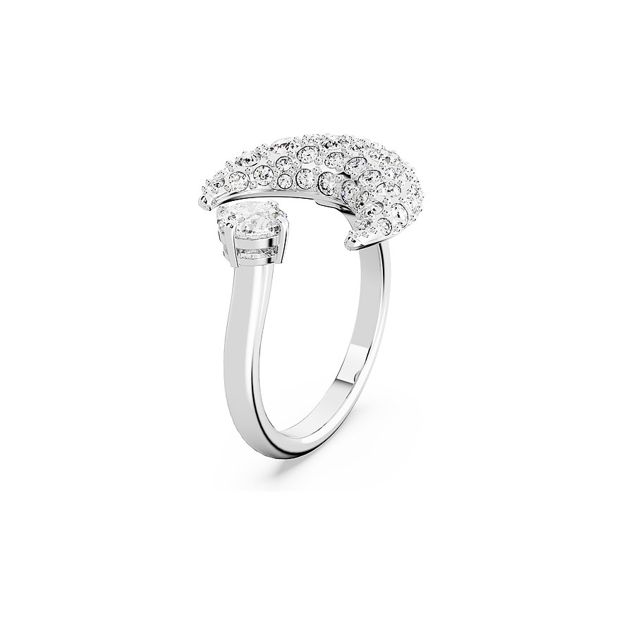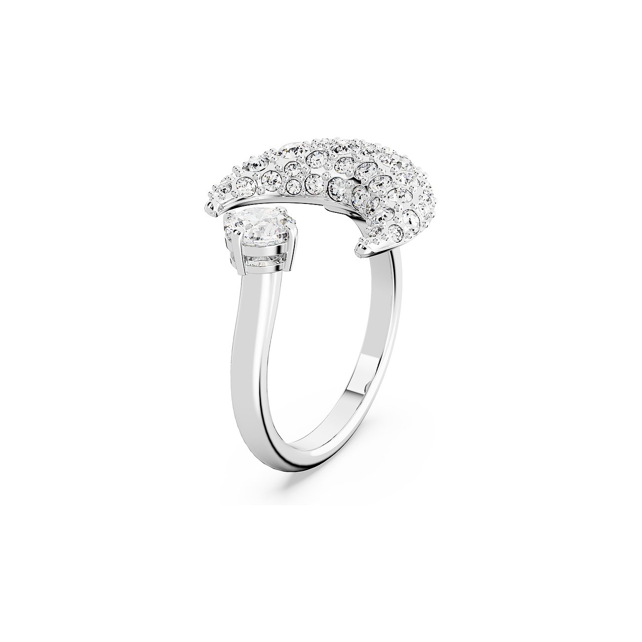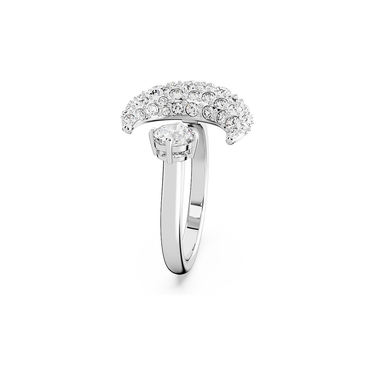 Stylishe Damenring für Frauen von Swarovski aus Metall in der Farbe Silber aus der Sublima-Kollektion, besetzt mit Swarovski-Kristall als funkelnder Eyecatcher. Die Farbe des Swarovski-Kristalls ist ein strahlendes, klares Weiß, das zwar neutral genug ist, um mit fast allen Farben und Looks kombinierbar zu sein, gleichzeitig aber mit dem feurigen Funkeln zu begeistern vermag. Er wird von einem Mond geschmückt. Für einen edlen, silberweißen Schimmer und eine pflegeleichte, abriebfeste Oberflächenveredelung sorgt eine haltbare Rhodinierung, das Finish ist glänzend. Ein Ring, der genauso facettenreich ist wie du – perfekt, um deinen ganz eigenen Stil zu zeigen.