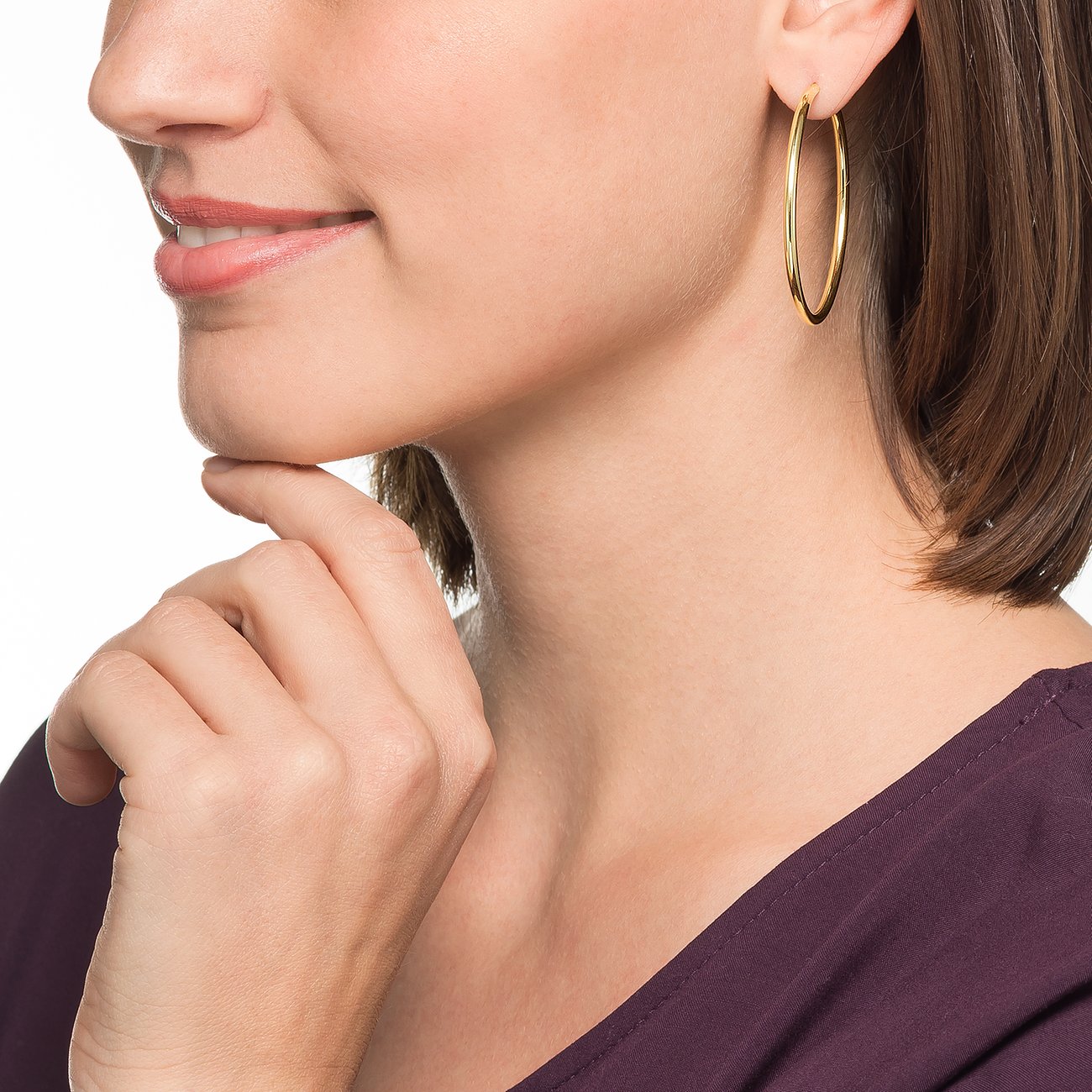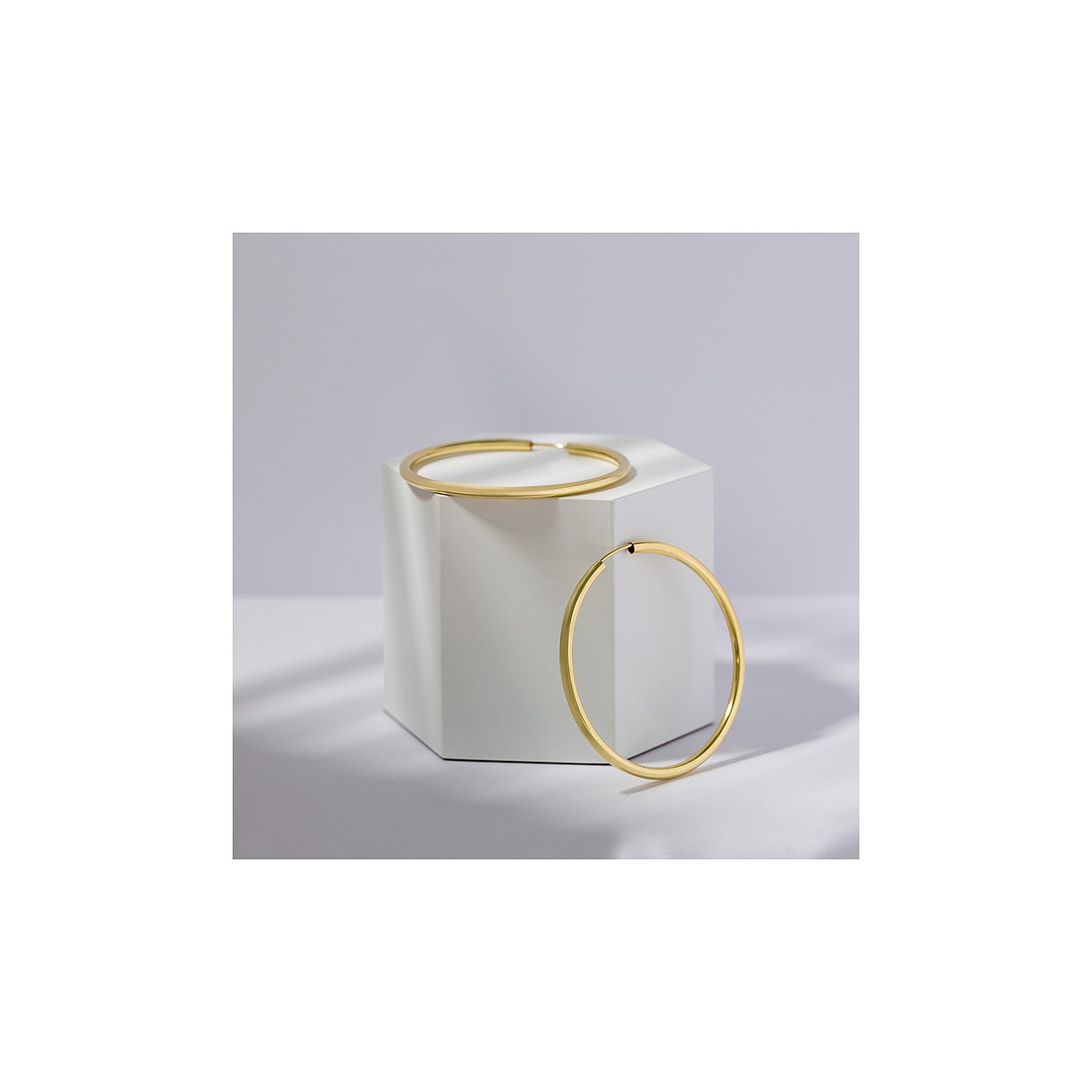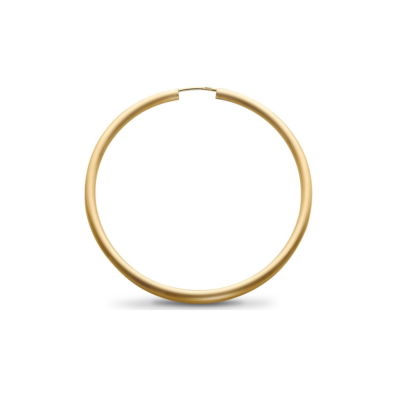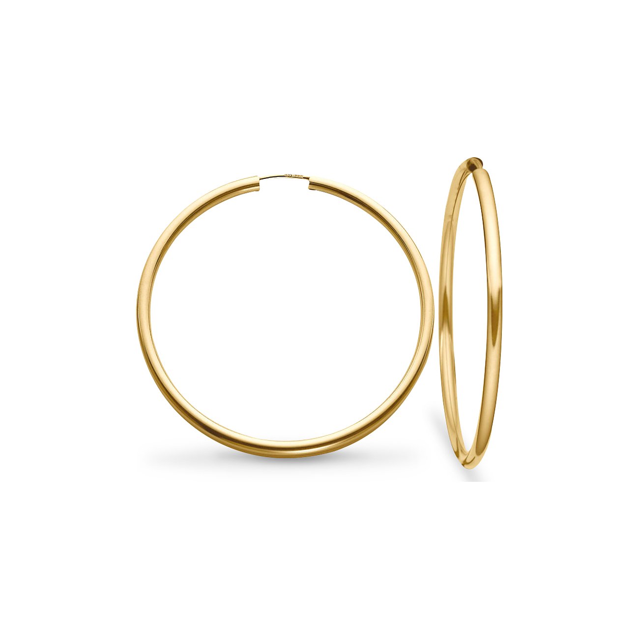 Zarte und durch ihre Größe doch signifikante Creolen aus 333er Gelbgold. Der Durchmesser dieses 0,25 cm breiten Schmuckstücks misst ca. 5 cm.