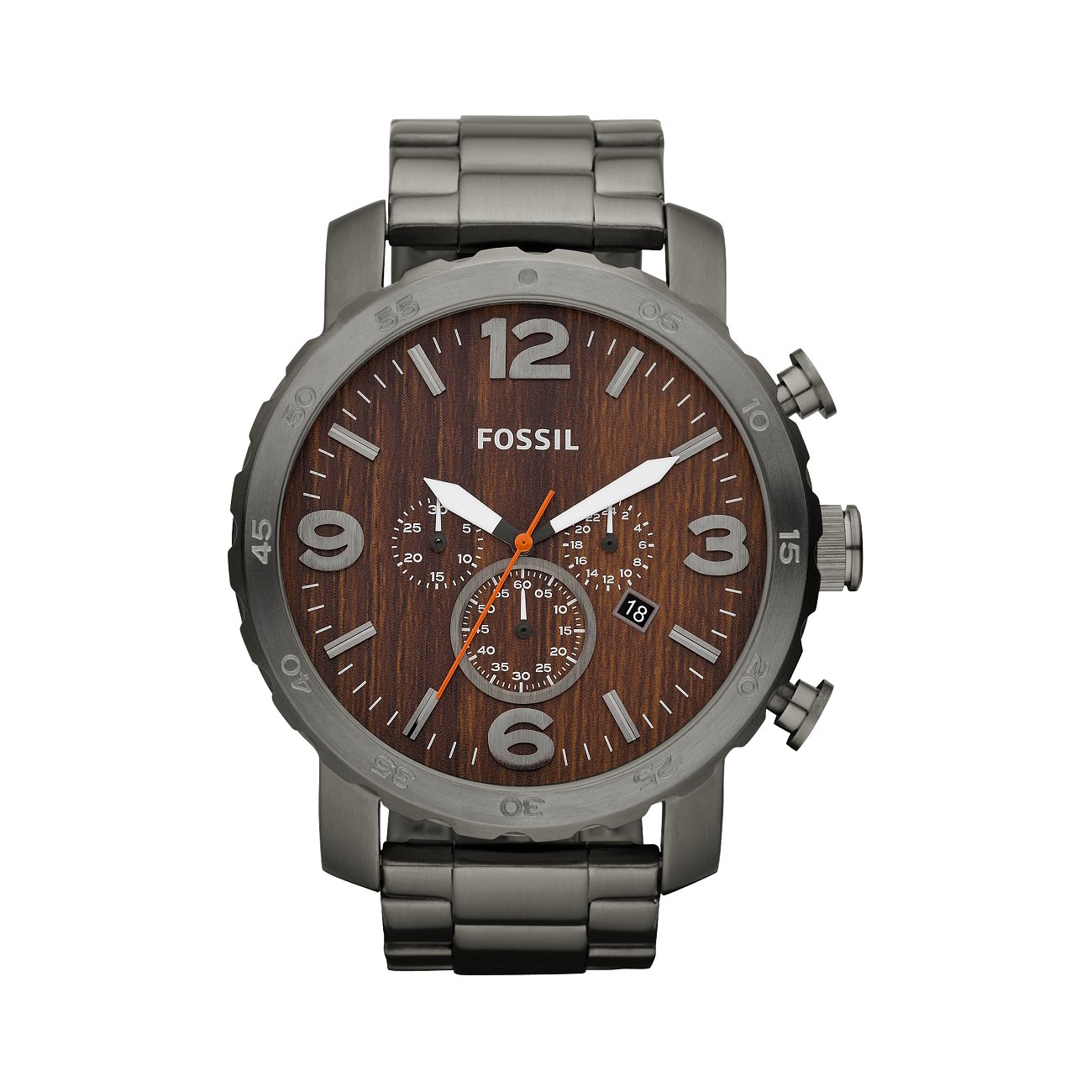 Mit diesem Herrenchronographen stellen wir Ihnen ein außergewöhnliches Design aus dem Hause Fossil vor. Das graue Edelstahlgehäuse umfasst ein unkonventionelles Zifferblatt in Holzmaserungsoptik. Der Stunden- und der Minutenzeiger treten deutlich hervor, da sie breit und zudem hell gestaltet sind. So lässt sich die Uhrzeit immer schnell und ohne Probleme ablesen. Der Sekundenzeiger kontrastiert gekonnt dazu: Er ist äußerst schmal, dafür aber in der Signalfarbe Rot gehalten – ein absolut belebendes Element. Das graue Edelstahlarmband verfügt über eine Butterfly-Faltschließe. Die imposanten Gehäuseabmessungen von 50 mm x 13 mm (Durchmesser x Höhe) machen diesen Herrenchronographen zu einem unübersehbaren Blickfang, mit dem Sie garantiert anerkennende Aufmerksamkeit erregen werden.