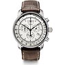 Das runde Gehäuse in coolem Schimmer wirkt stilsicher und edel. Arabische Zahlen erleichtern die Orientierung auf dem Ziffernblatt. Über allem liegt ein schützendes Mineralglas. Als Chronograph mit den typischen Hilfszifferblättern verfügt auch diese Zeppelin über die Komplikationen Stoppfunktion, Tachymeter sowie kleine Sekunde. Die Uhr erhält durch das schwarze Leder-Band eine gewisse Eleganz und wird durch die Dornschließe am Platz gehalten. Ein nützliches Feature ist die Datumsanzeige, die mit einem Blick das aktuelle Tagesdatum verrät. Das Quarz-Werk sorgt für Präzision. Gleichzeitig überzeugt diese Zeppelin-Uhr auch mit ihrer Funktionalität: Bei einer Wasserdichte bis zu 5bar sind Ausflüge an den See oder ins Schwimmbad problemlos möglich.