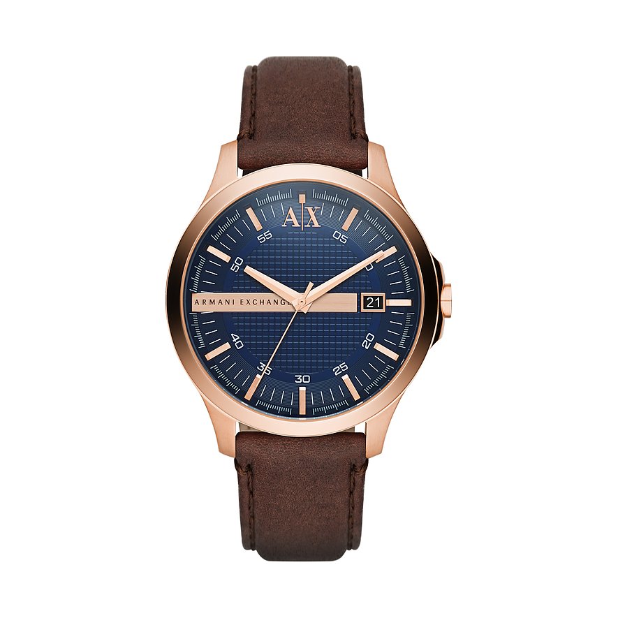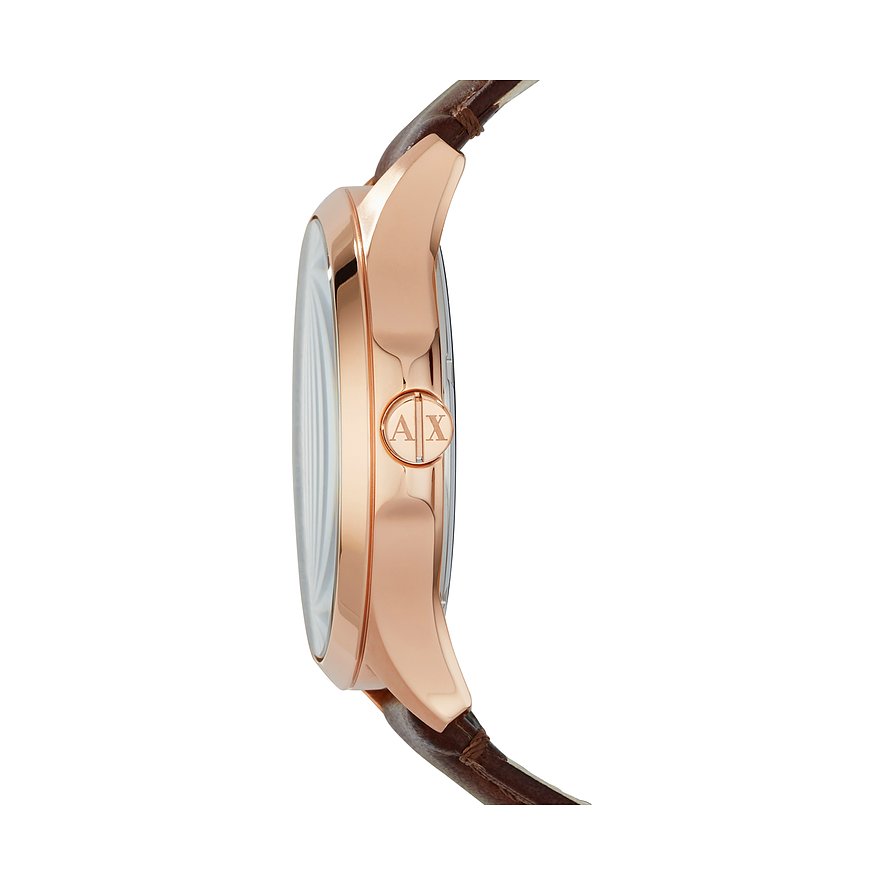 Armani Exchange bedeutet Luxus, den man direkt erkennt. Diese Herrenuhr des italienischen Labels weist auf dem Ziffernblatt gleich zweimal das Markenlogo auf und überzeugt durch eine moderne Linienführung in Kombination mit klassischen Materialien wie Leder und roségoldenem Edelstahl. Das ebenso praktische wie schicke Design des Ziffernblatts macht diese Uhr nach Meinung der Redaktion zum idealen Begleiter für Meetings und Geschäftstermine in eleganter Business-Garderobe.
