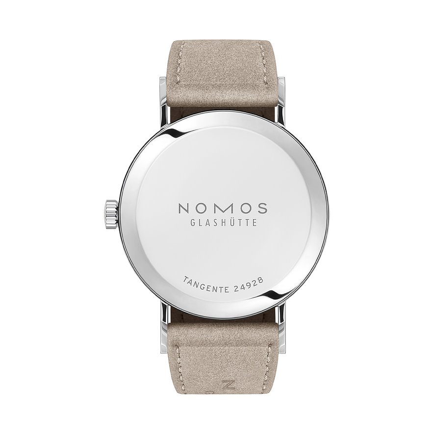 Mit seinen zeitlosen Uhren ist Nomos der wohl bekannteste Botschafter für „Made in Glashütte“. Im Jahr 1990 von Roland Schwertner gegründet, hat sich Nomos Glashütte heute als größter Hersteller mechanischer Uhren in Glashütte etabliert. Handgefertigt und von höchster Qualität, verkörpern die Uhren von Nomos das handwerkliche Erbe von Glashütte. Für einen besonderen Hingucker sorgt diese hochwertige Damenuhr der Marke Nomos Glashütte. Das Modell Tangente 33 champagner überzeugt mit seinem geschmackvollem Design, das mühelos jedes Outfit aufwertet. Das beigefarbene Armband aus Kalbleder passt perfekt zum zeitlos-eleganten Stil der Uhr mit Edelstahl-Gehäuse und garantiert hohen Tragekomfort. Die Tangente 33 champagner hat einen Gehäusedurchmesser von 33 mm und ist deshalb perfekt geeignet für schmale Handgelenke. Durch das champagnerfarbene Zifferblatt mit den arabischen Ziffern wirkt die Uhr besonders chic und geschmackvoll. Technisches Extra: Anstatt des Sekundenzeigers hat die Uhr eine Kleine Sekunde integriert. Ein strapazierfähiges Saphirglas übernimmt den Schutz des Zifferblatts. Dieses synthetische, äußerst hochwertige Material ist so gut wie nicht zu zerkratzen und unempfindlich gegen Schläge und Stöße. Das Alpha-Werk mit manuellem Aufzug sollte täglich einmal - möglichst immer zur selben Zeit - durch Drehen an der Krone aufgezogen werden. Dank der Gangreserve von 43 Stunden ist es jedoch kein Problem, wenn das tägliche manuelle Aufziehen im Trubel des Alltags mal vergessen wird. Spritzwassergeschützt bis 3 bar kann die Uhr sorglos auch beim Händewaschen am Handgelenk verbleiben. Die Dornschließe bietet nicht nur optimalen Halt, sondern lässt sich in der Größe auch gut ans Handgelenk anpassen.