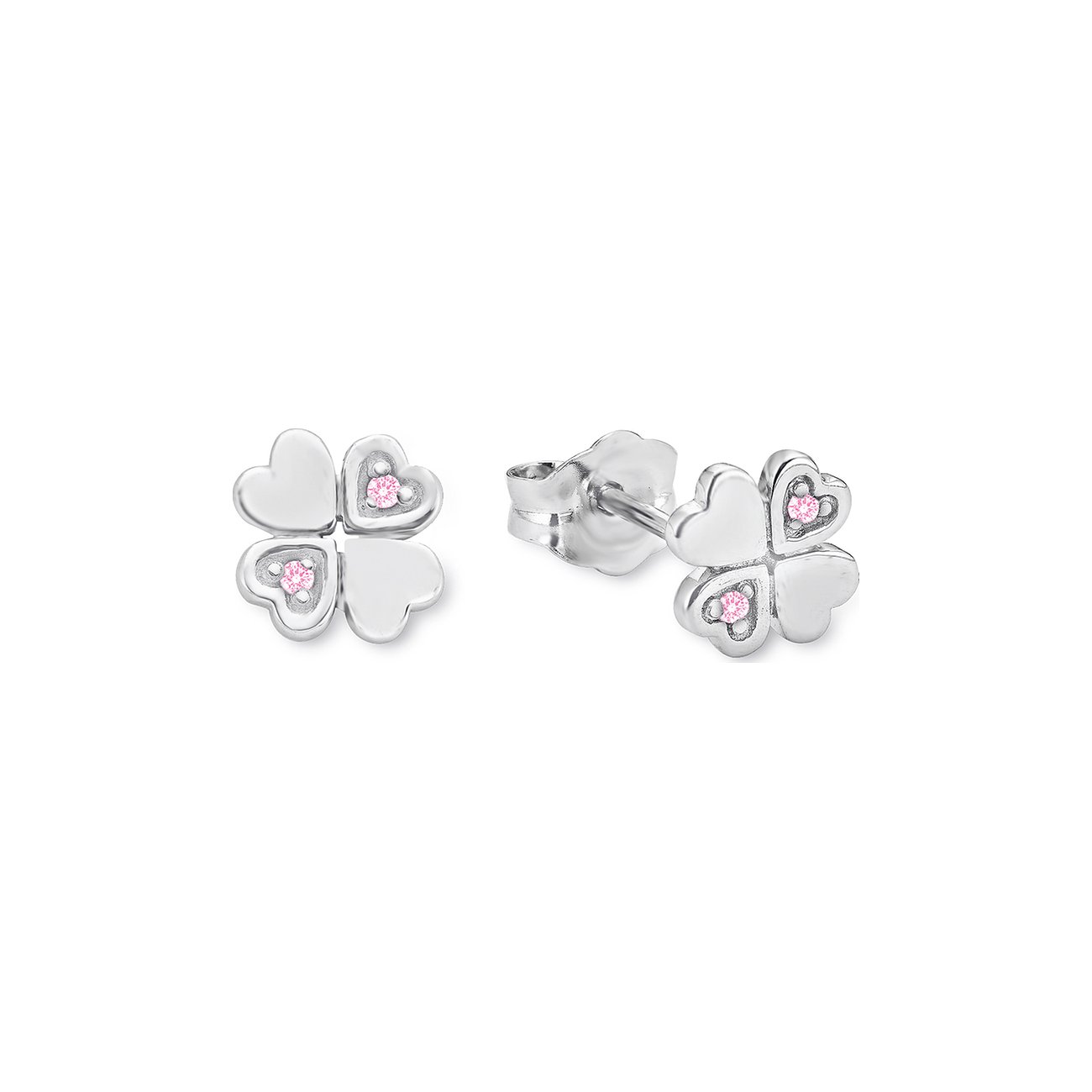 Ein 4-blättriges Kleeblatt, das bei genauer Betrachtung aus einzelnen Herzen besteht, ist hier der Star der Show. Diese Ohrstecker für Mädchen von FAVS bieten aber noch mehr. Jeweils 2 Herzen beherbergen einen glitzernden Zirkonia in Rosa, der mit seiner Trägerin um die Wette strahlen darf. Poliertes 925er Silber bürgt für Langlebigkeit und einen schmucken Begleiter für viele Jahre. Wer Glück gepaart mit Herzlichkeit verschenken möchte, liegt hier richtig.