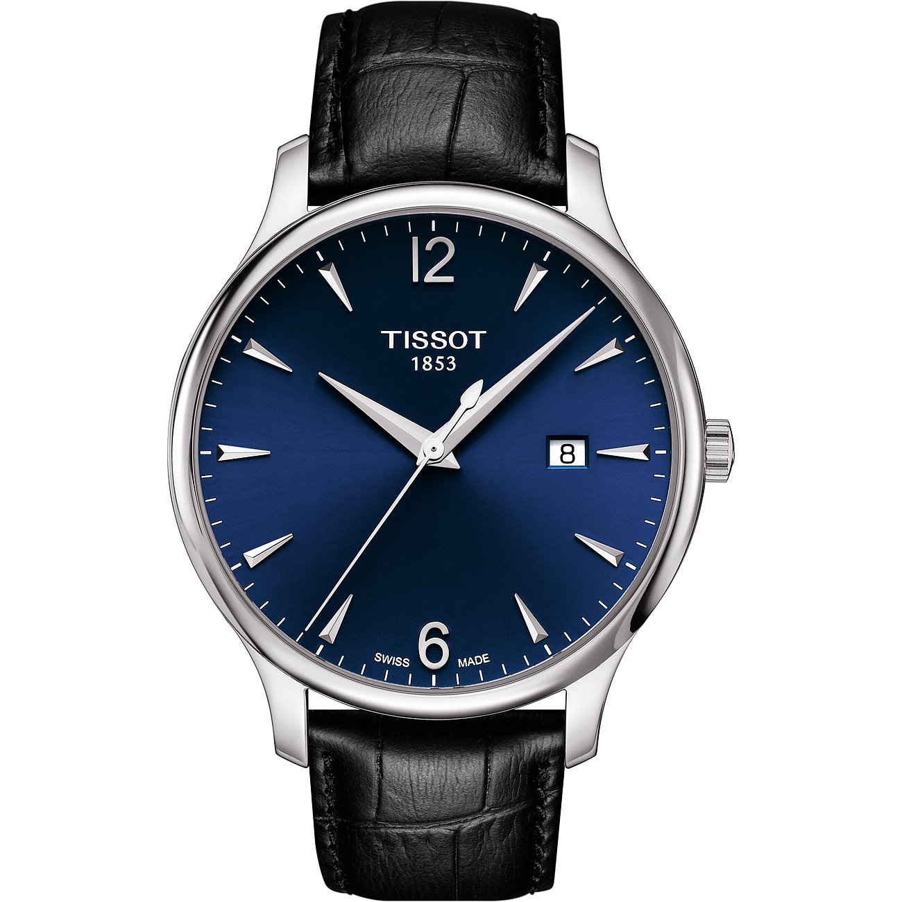 Auf der Suche nach einer Uhr, die Schweizer Uhrmacherkunst und top Preis-Leistungsverhältnis vereint? Dann ist Tissot genau die richtige Marke! Seit 1853 werden in der Manufaktur aus dem schweizerischen Le Locle hochwertige Uhren in vollendeten Designs hergestellt. Für einen besonderen Hingucker sorgt diese hochwertige Herrenuhr der Marke Tissot. Das Modell T-Classic Tradition überzeugt mit seinem geschmackvollem Design, das mühelos jedes Outfit aufwertet. Das schwarze Armband aus Leder passt perfekt zum zeitlos-eleganten Stil der Uhr mit Edelstahl-Gehäuse und garantiert hohen Tragekomfort. Die T-Classic Tradition ist mit einem Gehäusedurchmesser von 42 mm die perfekte Uhr sowohl für schmalere als auch breitere Handgelenke. Durch das blaue Zifferblatt mit den Markierungen wirkt die Uhr besonders edel und stilvoll. Mit dem Zeitmesser haben Sie neben der Uhrzeit auch das Datum immer im Blick. Für den Schutz des Zifferblattes wurde der "König der Uhrengläser" verwendet: Saphirglas. Dieses synthetische Material ist so gut wie nicht zu zerkratzen und äußerst strapazierfähig. Saphirglas ist außerdem quasi immun gegen Stöße und Schläge. Im Inneren tickt ein robustes Eta-Quarzwerk, welches zuverlässige Präzision garantiert. Mit einer Wasserdichte von 3 bar ist die Uhr spritzwassergeschützt und kann beim Händewaschen problemlos am Handgelenk bleiben. Die Butterfly-Faltschließe sorgt nicht nur für sicheren Halt, sondern lässt sich auch gut in der Größe verstellen.