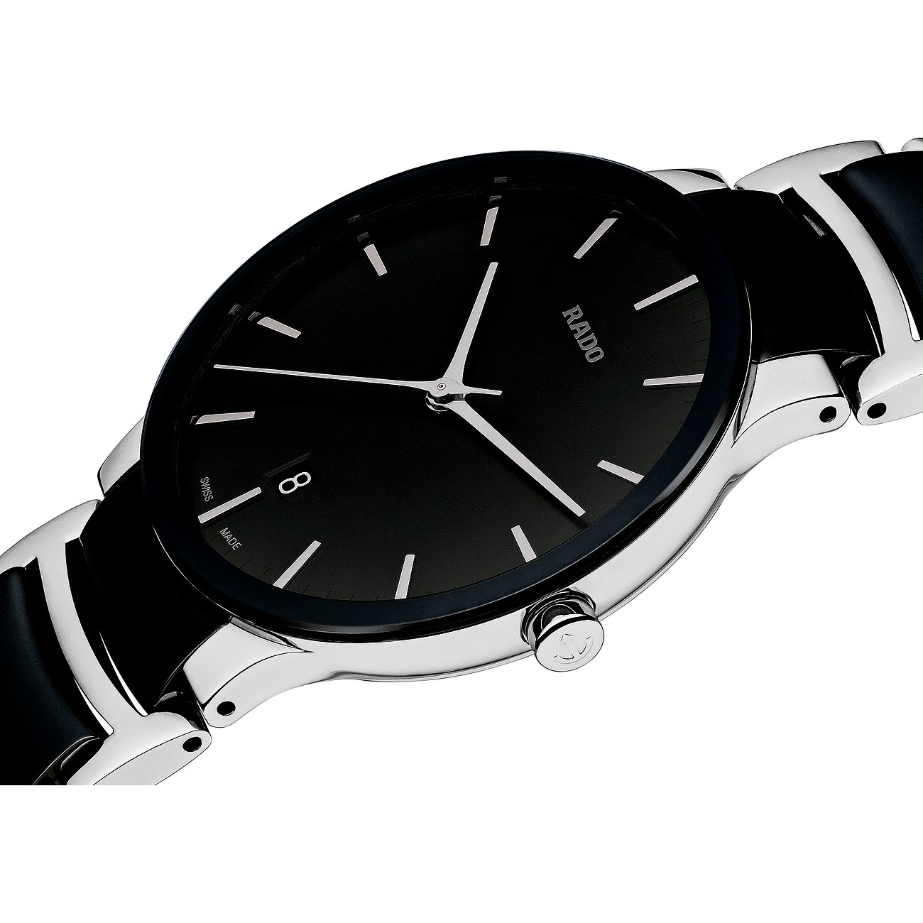 Das große, schwarze Gehäuse klassifiziert die elegante Armbanduhr von RADO als Unisex-Modell. Durch die schönen Dimensionen wirkt die Uhr dennoch keinesfalls klobig, sondern sehr exklusiv. Die feinen Indizes in Silber betonen den Luxus. Auch an dem Gliederarmband zeigen sich silberne Elemente, die einen stilvollen Kontrast erzeugen. Ein Klassiker der Schweizer Uhrmacherkunst für jedes Outfit.