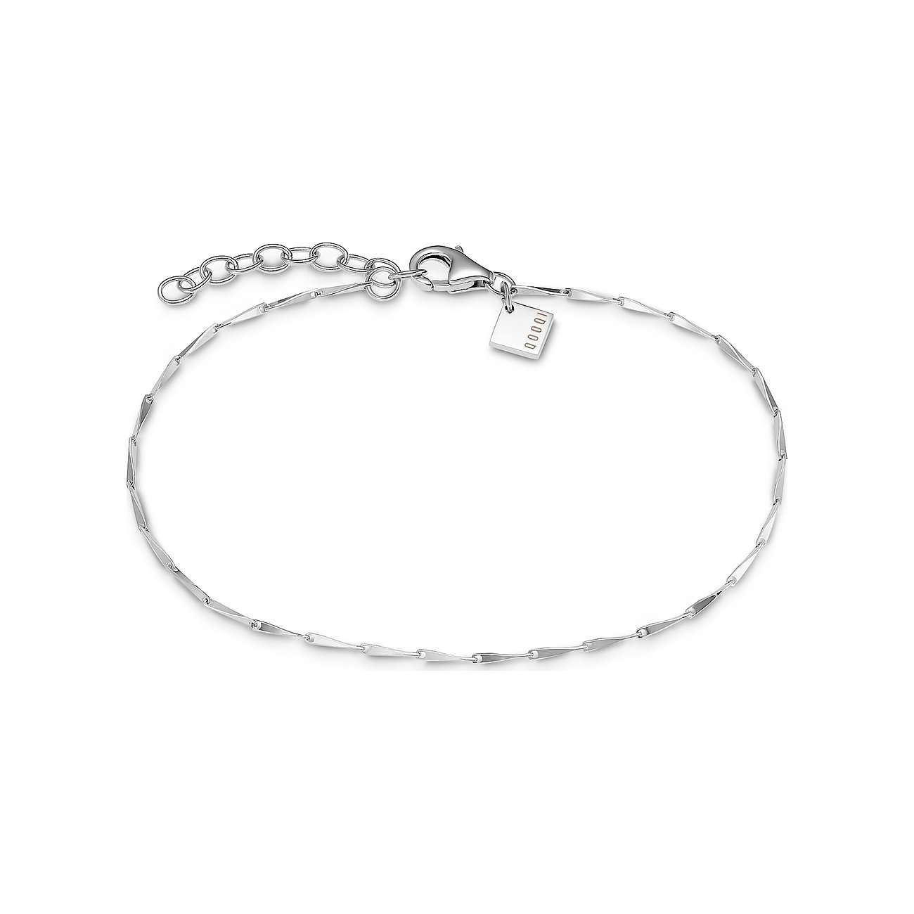 Dieses Armband von QOOQI fasziniert durch die eigenwillige Form der Kettenglieder. Bei diesem ansonsten bewusst schlicht gehaltenen Armschmuck steht nämlich das raffinierte Design der in sich gedrehten, länglichen Silberstifte der Kette im Vordergrund. Auch das Licht findet auf diese Weise viele Gelegenheiten, um das Armband zum Funkeln zu bringen. Wir finden: Die aufregende Formsprache wirkt in Silber besonders lässig und macht das Armband zu einem tollen Begleiter für jeden Tag.