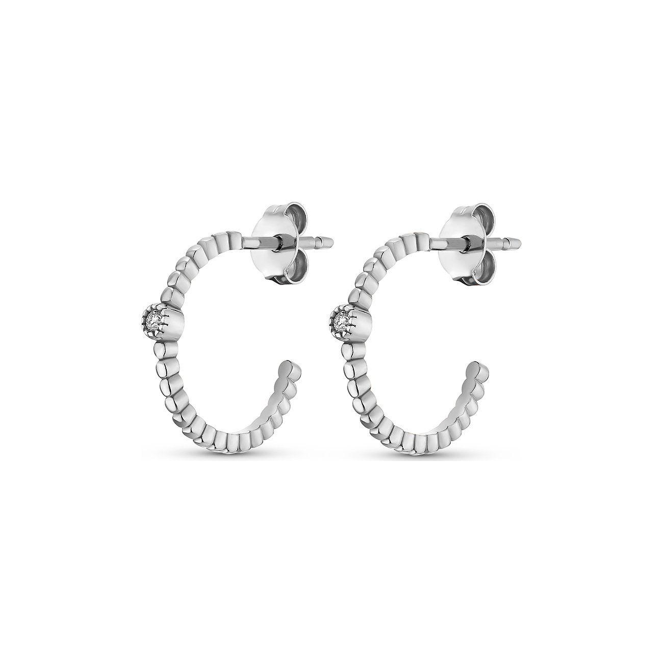 Eine Linie aus kleinen, glänzend polierten Punkten formt sich zum Bogen: Das ist das Hauptdesign bei den eleganten Ohrringen. Als besonderes i-Tüpfelchen blitzt vorne ein weißer Diamant auf. Damit macht CHRIST die femininen Creolen aus 375er Weißgold zu einem wertvollen Highlight. Der Ohrschmuck bildet einen 3/4-Kreis und strahlt eine sanfte Harmonie aus. Damit schmücken sich moderne Frauen immer wieder gerne, sei es zum kleinen oder großen Anlass.