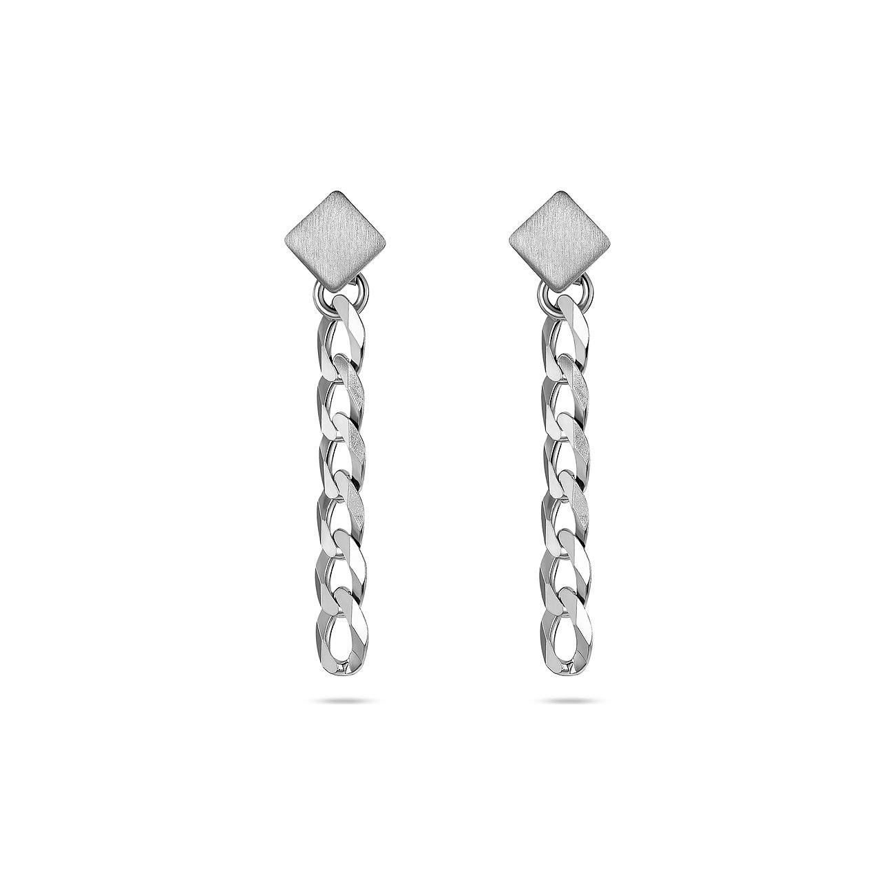 Rockig und wandelbar, so lieben wir unseren Ohrschmuck aus echtem Silber: QOOQI präsentiert hier einen topaktuellen Ohrstecker, der viele Herzen schneller schlagen lässt. Die coolen eckigen Stecker sind jeder mit einem frei beweglichen Ketten-Element versehen, das Sie für einen schlichteren Look jederzeit einfach abnehmen können. Auch asymmetrisch gestylt machen diese Ohrringe übrigens eine richtig gute Figur. Für unsere Redaktion sind sie ein Statement-Piece für jeden Tag.