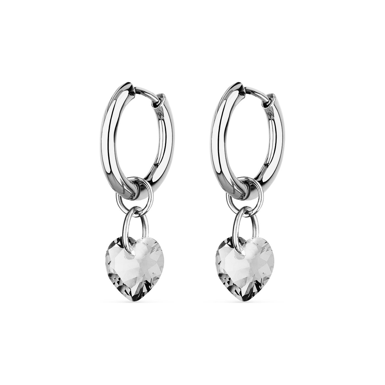 An den glänzenden, stabil aussehenden Creolen aus Edelstahl hängt ein funkelndes Herz: Das besteht komplett aus weißem Zirkonia. Für die wertvolle Optik ist der Farbstein rund facettiert. Der Aufhänger führt direkt hindurch. Mit diesem liebevollen Schmuckdesign wendet sich GMK an stilbewusste Damen, die das Besondere mögen. Romantisch und modern - ein Look, der begeistert.