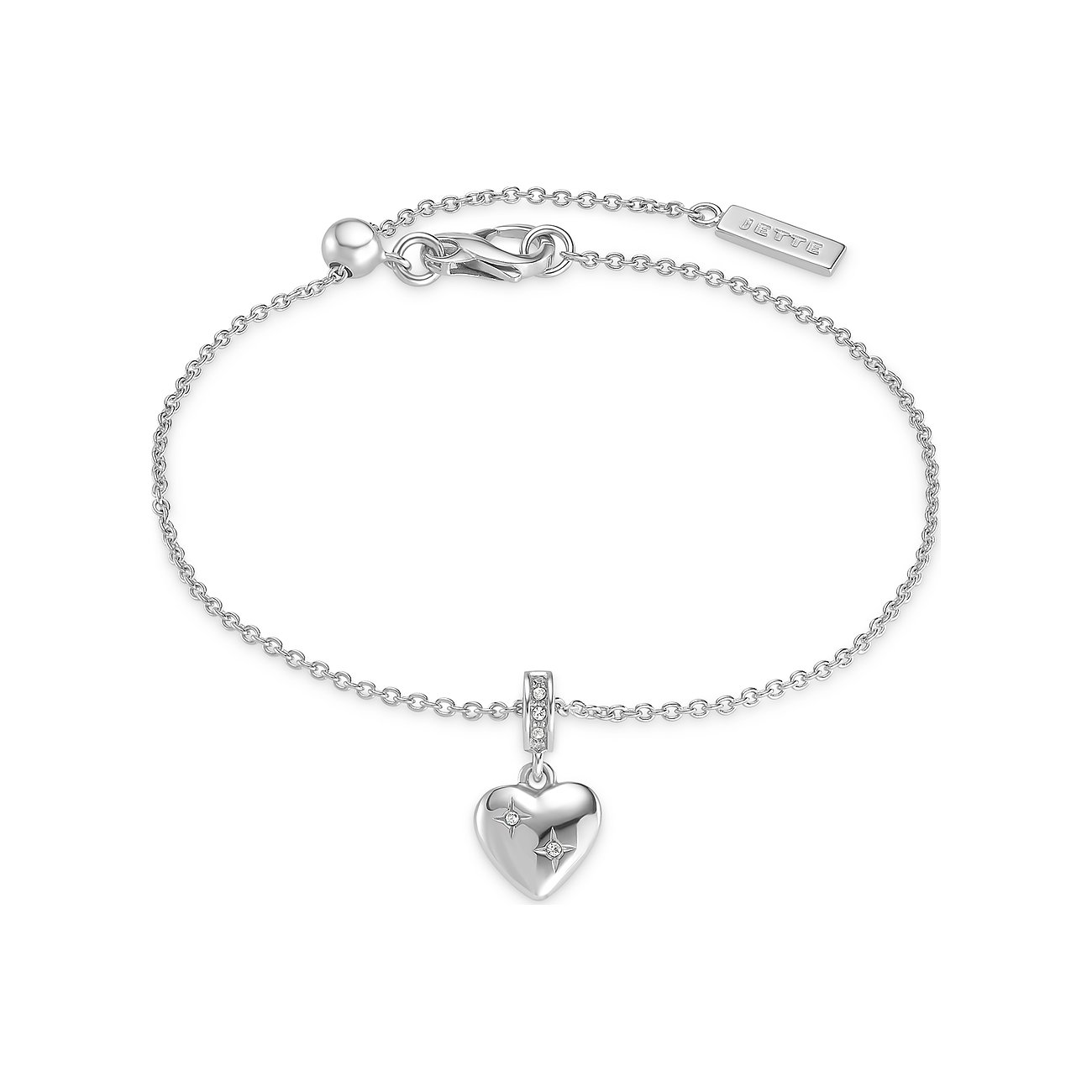Der perfekte Schmuck für das weibliche Handgelenk kommt mit wenigen Zutaten aus. Dieses Armband aus dem Hause JETTE beweist einmal mehr, dass gepflegtes Understatement niemals aus der Mode kommt. Das zarte Kettchen trägt einen herzförmigen Anhänger, der auf beiden Seiten mit Details aus schimmernden Zirkonia-Steinen punktet. Das kombistarke Schmuckstück ist in den Trendfarben Silber, Gelbgold und Roségold erhältlich.