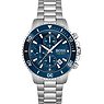 Die Boss Admiral, ein Chronograph für den anspruchsvollen Herrn, bietet mit ihrem Edelstahlgehäuse und Edelstahlband dynamischen Style. Die Boss Admiral ist silbern und hat ein Armband in Silber, das Ziffernblatt ist blau.