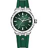 Die Uhrenmarke Maurice Lacroix steht seit über 40 Jahren für hochwertige Zeitmesser, die sich durch handwerkliche Präzision und ein einzigartiges Design auszeichnen. Wer auf der Suche nach einem wahren Allrounder für Alltag, Business und besondere Anlässe ist, trifft mit der Unisexuhr Aikon Date genau die richtige Wahl! Durch ihr bedingungslos formvollendetes Design passt die hochklassige Uhr sich spielerisch allen Looks an. Das robuste, grüne Armband aus Kautschuk sorgt für zeitlosen Chic und angenehmen Tragekomfort. Sowohl an schmalen als auch an mittleren Handgelenken macht die Aikon Date mit einem Gehäusedurchmesser von 39 mm eine gute Figur. Das grüne Zifferblatt fügt sich gekonnt in das Design der Uhr ein. Durch die Leuchtzeiger und die Leuchtindizes ist das Ablesen der Uhrzeit auch bei schlechten Lichtverhältnissen einfach. Diese Uhr ist nicht nur elegant, sondern auch praktisch: Sie verrät nicht nur die Uhrzeit, sondern auch das Datum. Für den Schutz des Zifferblattes wurde der "König der Uhrengläser" verwendet: Saphirglas. Dieses synthetische Material ist so gut wie nicht zu zerkratzen und äußerst strapazierfähig. Saphirglas ist außerdem quasi immun gegen Stöße und Schläge. Das Automatikwerk ist absolut zuverlässig und präzise. Durch die täglichen Bewegungen wird der bewegliche Rotor angetrieben, so dass man die Uhr nicht aufziehen muss. Durch das Sichtfenster im Gehäuseboden bekommt man spannende Einblicke in das Innere der Uhr. Aufregende Abenteuer oder doch eher Alltag? Mit der Aikon Date am Handgelenk ist das vollkommen egal, denn sie ist in beiden Bereichen überaus zuverlässig. Dank der beeindruckenden Wasserdichte von 20 bar kann man auch Schwimmen und Tauchen, ohne sich Sorgen machen zu müssen. Die Dornschließe bietet nicht nur optimalen Halt, sondern lässt sich in der Größe auch gut ans Handgelenk anpassen. Mehr Variabilität geht nicht: Durch das leicht austauschbare Armband lässt sich der Look der Uhr ganz einfach anpassen.
