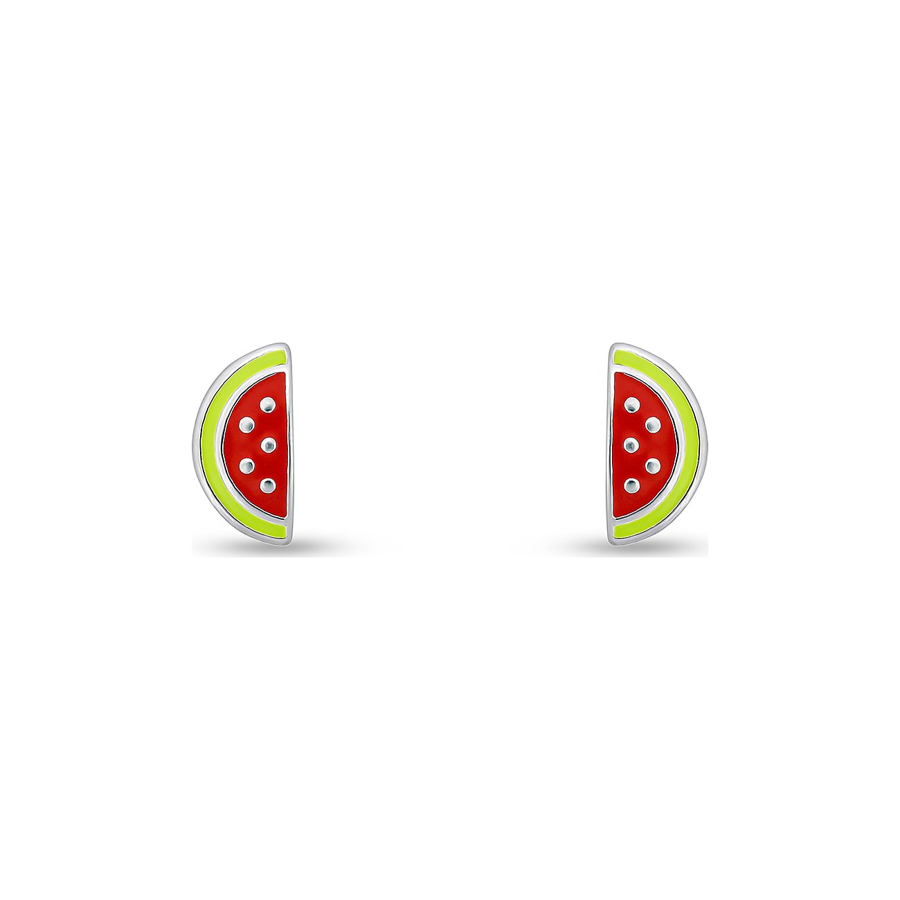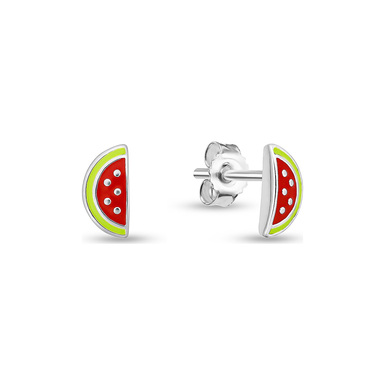 Sommerliche Frische und modischen Schwung bringen diese Ohrstecker für Mädchen von FAVS gleich mit. Die fruchtige Wassermelone steht hier als Motiv im stylishen Mittelpunkt. Getragen wird das freche Früchtchen von solidem 925er Silber. Diese Accessoires sind die idealen Begleiter für den Sommer, den Urlaub und natürlich die Ferien. Ein patenter Steckverschluss bürgt für Sicherheit und hält die Schmuckstücke an Ort und Stelle.