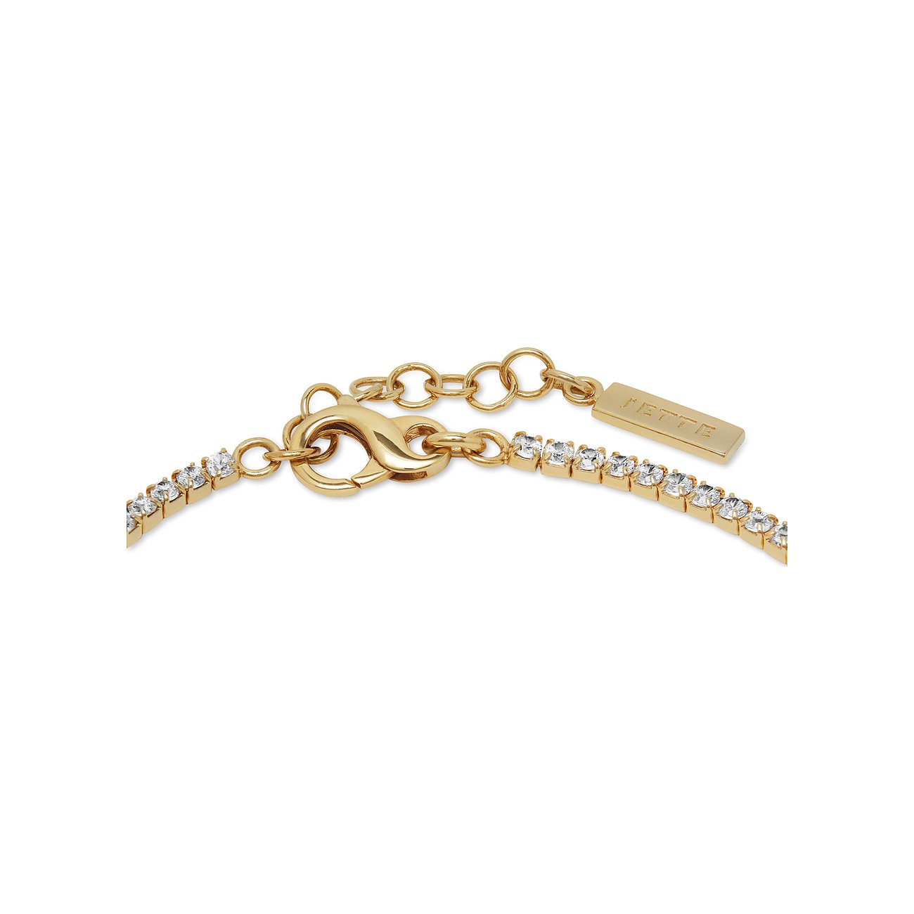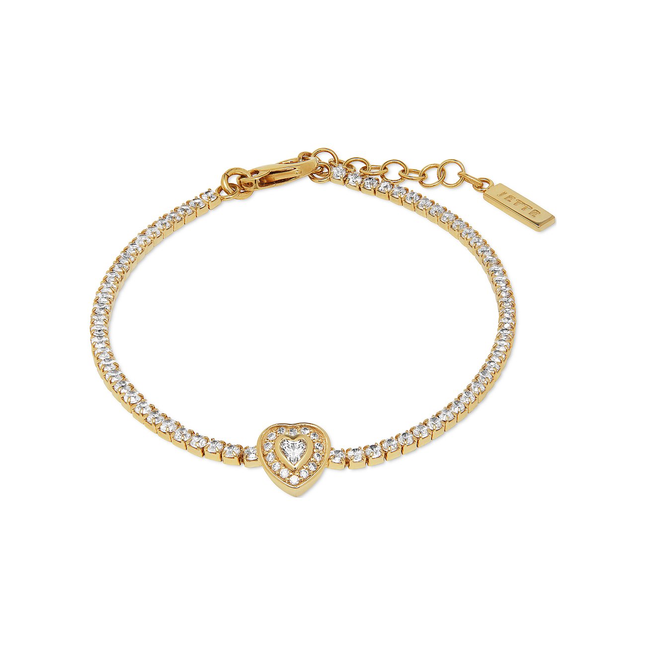 Ein kostbar anmutendes Schmuckstück voller Eleganz und Charakter stellt dieses Armband für Damen aus dem Hause JETTE dar. Poliertes Silber erstrahlt einmal pur oder vergoldet in Gelb oder Rosé. Das Schmuckband selbst besteht aus 2 Reihen funkelnder Zirkonia-Steinchen. Den Mittelpunkt bildet ein apartes Deko-Element in Herzform, welches ebenfalls dank zahlreicher perfekt facettierter Schmucksteine mit seiner Trägerin um die Wette strahlt.