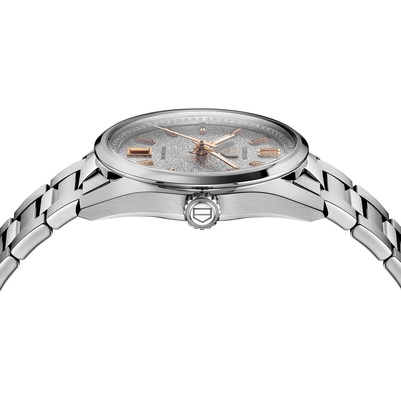 Markante Designs, markante Details, höchste Uhrmacherkunst: TAG Heuer, die Luxusmarke aus La Chaux-de-Fonds in der Schweiz, fertigt seit über 160 Jahren Präzisionsuhren vollendetester Qualität. Sportliche Eleganz gefragt? Dann hat die Carrera Date 36mm das Zeug, zur neuen Lieblingsuhr zu werden! Die hochwertige Damenuhr mit Edelstahl-Gehäuse bringt ungezwungenen Luxus ans Handgelenk. Das zeitlose, stilvolle Design passt ideal zu legeren Freizeit-Outfits, komplettiert aber auch mühelos Business-Dresses oder festliche Looks. Auch das silberfarbene Armband aus Edelstahl trägt seinen Teil dazu bei, diese Uhr zum stilistischen Allrounder zu machen. Es garantiert außerdem angenehmen Tragekomfort und robuste Langlebigkeit. Durch den Gehäusedurchmesser von 36 mm ist die Carrera Date eine ideale Uhr für alle, die ein schmales Handgelenk haben. Das silberfarbene Zifferblatt ist ein besonderer Eyecatcher der Uhr. Für den Schutz des Zifferblattes wurde der "König der Uhrengläser" verwendet: Saphirglas. Dieses synthetische Material ist so gut wie nicht zu zerkratzen und äußerst strapazierfähig. Saphirglas ist außerdem quasi immun gegen Stöße und Schläge. Die Uhr hat ein Automatikwerk, das zuverlässig und präzise arbeitet. Der bewegliche Rotor wird durch die täglichen Bewegungen beim Tragen angetrieben, so dass kein manuelles Aufziehen erforderlich ist. Mit einer Wasserdichtigkeit bis 10 bar ist die Uhr der ideale Begleiter für Alltag und Abenteuer: Sogar Schwimmen ist unbesorgt möglich! Die Faltschließe verspricht nicht nur sicheren Halt, sondern auch gute Verstellbarkeit.