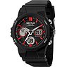 Du liebst es futuristisch-modern? Dann ist diese schwarze Kunststoff-Uhr mit roten Highlights von SECTOR dein neues Lieblingsteil! Auf dem analogen Ziffernblatt sind drei Hilfsziffernblätter mit digitalen Anzeigen eingesetzt. Diese Mischung sorgt für den besonderen Charme der Smartwatch. Das eckige Gehäuse und das robuste Sportarmband runden den sportlich-funktionalen Look der Uhr perfekt ab. Über die silbernen Drücker links und recht am Gehäuse kannst du nicht nur über Start, Stop und Reset bestimmen, sondern auch den Modus der Uhr einstellen und Licht einschalten. Sogar eine zweite Zeitzone gehört zu den spannenden Features dieser Uhr!