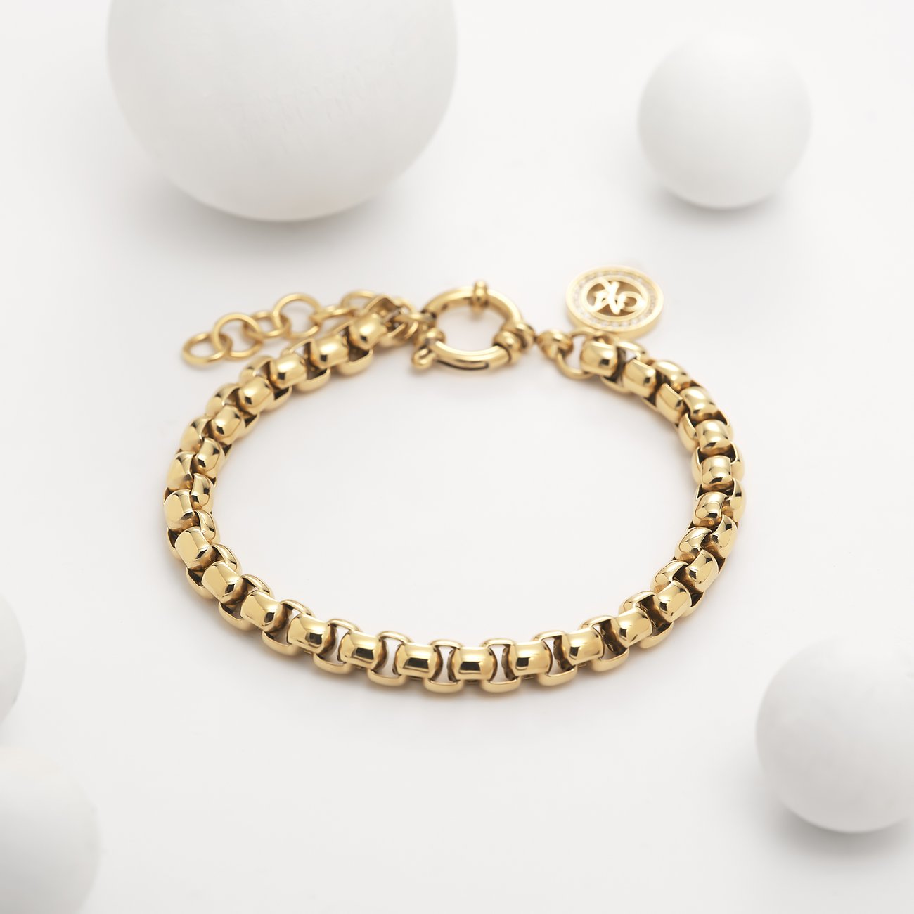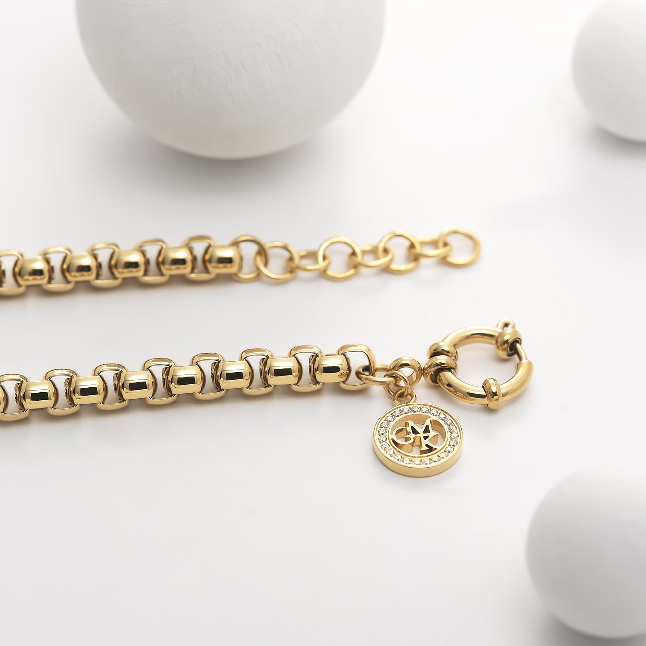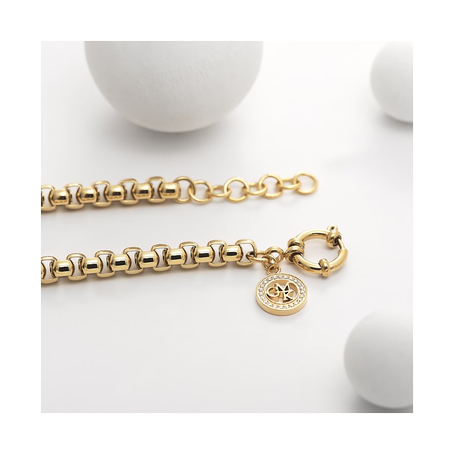 Dieses längenverstellbare Armband von Guido Maria Kretschmer kannst du zu jedem Anlass tragen – versprochen! Als hochwertig verarbeitetes Schmuckstück aus vergoldetem Edelstahl ist es der Inbegriff von modischem Understatement. Die breiten, fein glänzenden Glieder sind im Stil einer klassischen Venezianerkette miteinander verbunden. Sie laufen an einem Federringverschluss mit Markenanhänger zusammen. Trage das Accessoire solo oder kombiniere Arm-Cuff, Tennisarmband und Co. dazu.