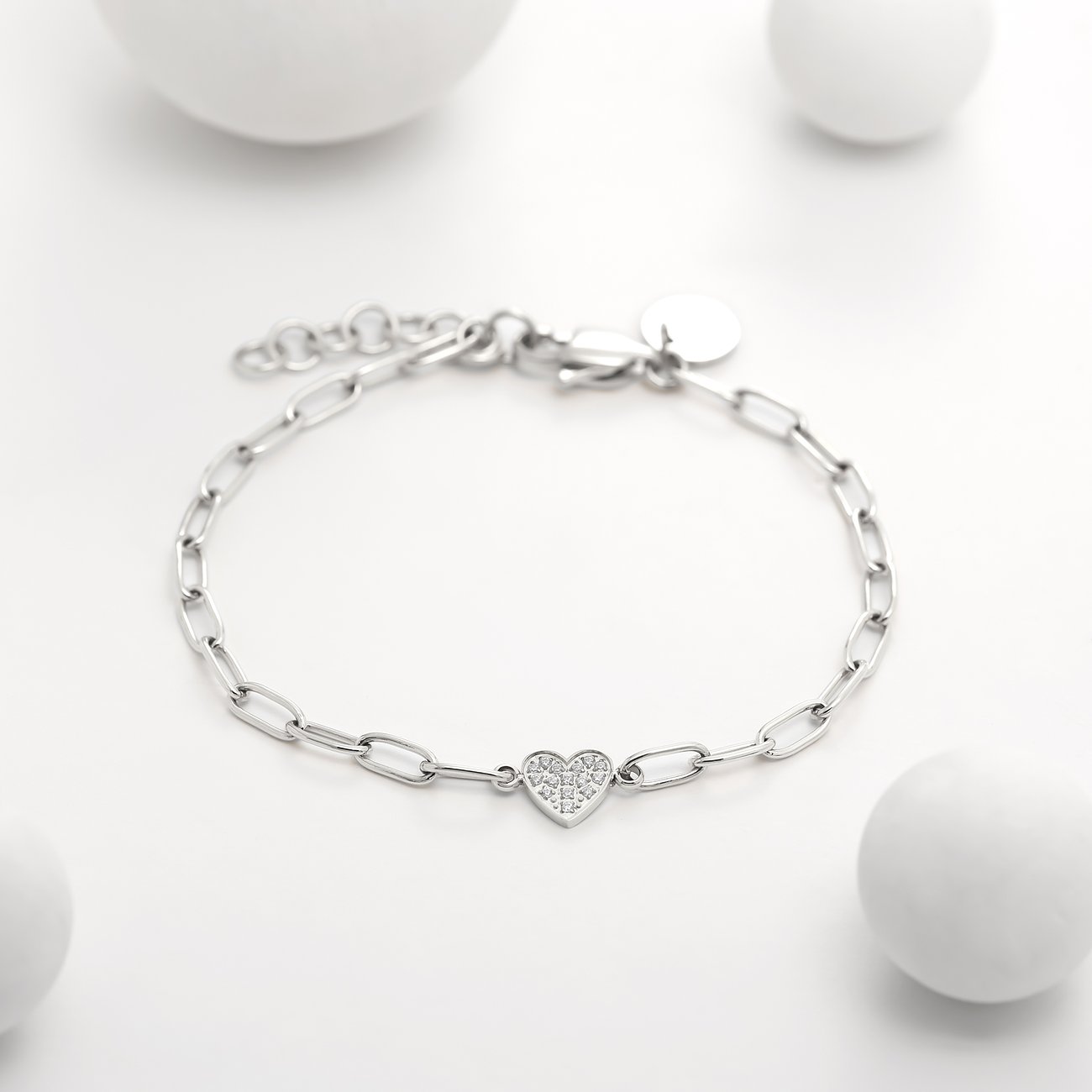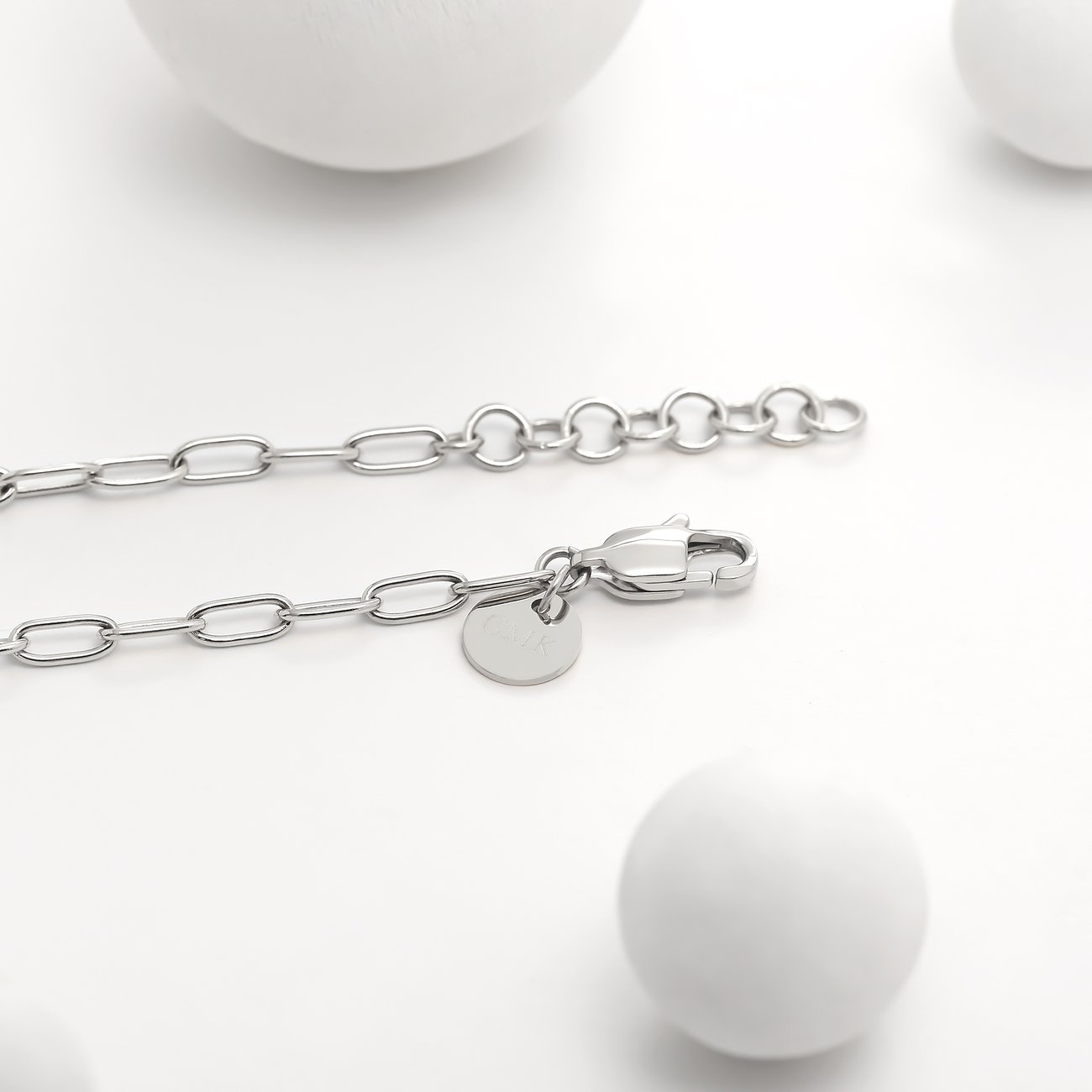 Man nehme etwas Modernes und etwas Zeitloses – fertig ist dieses einzigartige Armband von Guido Maria Kretschmer aus silbernem Edelstahl. Die länglichen Glieder sind im trendigen Paperlink-Stil gestaltet. In ihrer Mitte thront ein Schmuckelement in Form des ewigen Liebessymbols mit weißem Farbsteinbesatz. Du trägst deine Accessoires gerne im Set? In der Kollektion des Top-Designers findest du die passende Kette zu diesem längenverstellbaren Armschmuck!