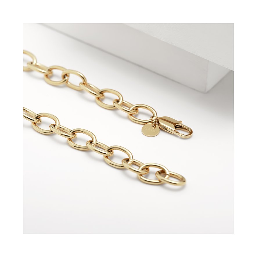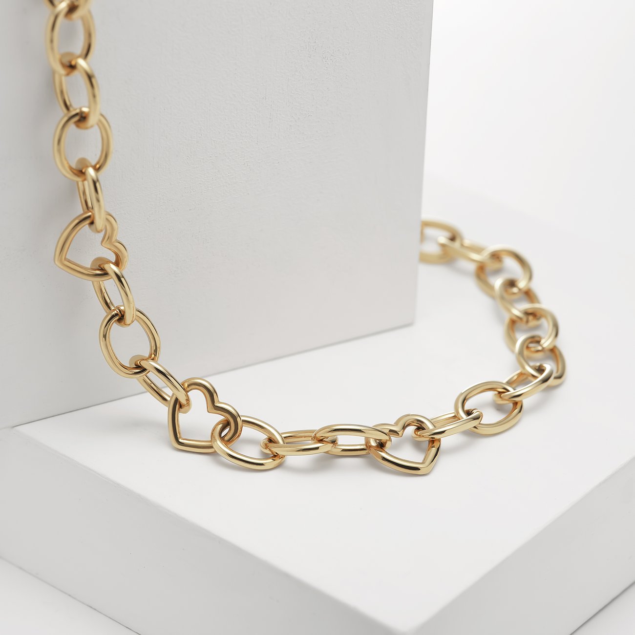 Füge deiner Accessoire-Auswahl ein neues Lieblingsteil hinzu – diese mittellange Halskette von Guido Maria Kretschmer. Das Schmuckstück aus goldfarbenem Edelstahl bringt ovale Ankerkettenglieder mit 3 Elementen in Herzform zusammen. Dank der luftigen Form kannst du den Karabinerverschluss an einer beliebigen Stelle einhaken, um die Länge zu verstellen. Trage die Kette zu dezenten Outfits solo. Du magst es auffälliger? Mache sie zum Blickfang in deinem angesagten Layering-Look!