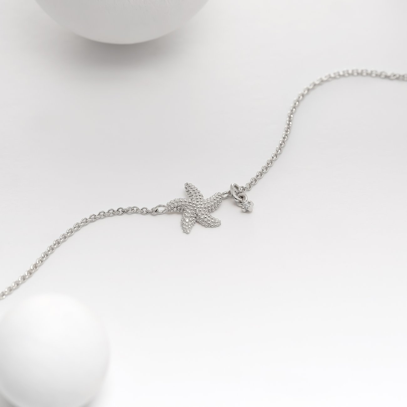 Mit diesem Armband aus 925er Silber stellt Guido Maria Kretschmer erneut seine Liebe zum Detail unter Beweis. In der Mitte sitzt ein präzise strukturiertes Schmuckelement in Form eines kleinen Seesterns. Ein Anhänger mit einem winzigen Brillanten kuschelt sich sanft an ihn. Das zeitlos schöne Duo ist das perfekte i-Tüpfelchen für all deine Freizeit-, Büro- und Urlaubslooks! Für einen sicheren Sitz ist dank des leichtgängigen Karabinerverschlusses ebenfalls gesorgt.