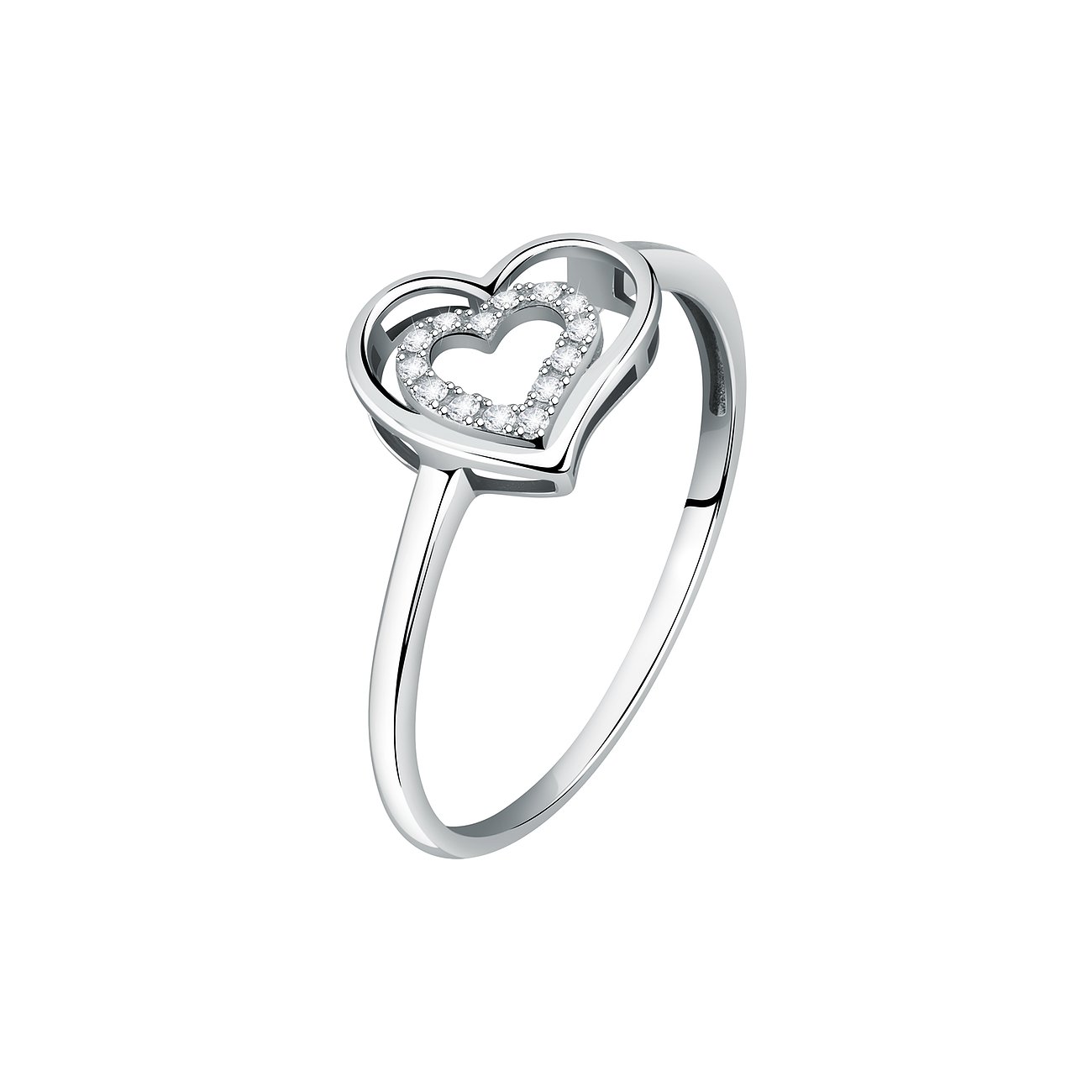 Herz an Herz: In diesem verspielten CHRIST Ring wurde das Liebessymbol doppelt verewigt. Die äußere Fassung und die Schiene bestehen aus poliertem 375er Weißgold. Mit seiner glänzenden Oberfläche reflektiert das Edelmetall die Lichtstrahlen spektakulär. Für ein zusätzliches Funkeln sorgt das diamantbesetzte innere Element. 14 runde Brillanten schmiegen sich herzförmig aneinander – für ein strahlendes Accessoire, auf das du garantiert angesprochen wirst!
