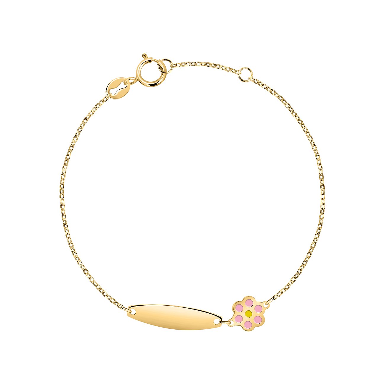 Im Sommer findest du deine Kleinen immer auf der schönsten Blumenwiese? Dann wird es Zeit, diese an ihre Handgelenke zu befördern! Dieses zarte FAVS Armband aus Gelbgold fällt sofort aufgrund seines kleinen Elements in Blumenform auf. 5 rosafarbene Kreise setzen sich zu einer floralen Optik zusammen. Es schließt sich ein längliches Goldelement an und leistet dem Blümchen Gesellschaft.
