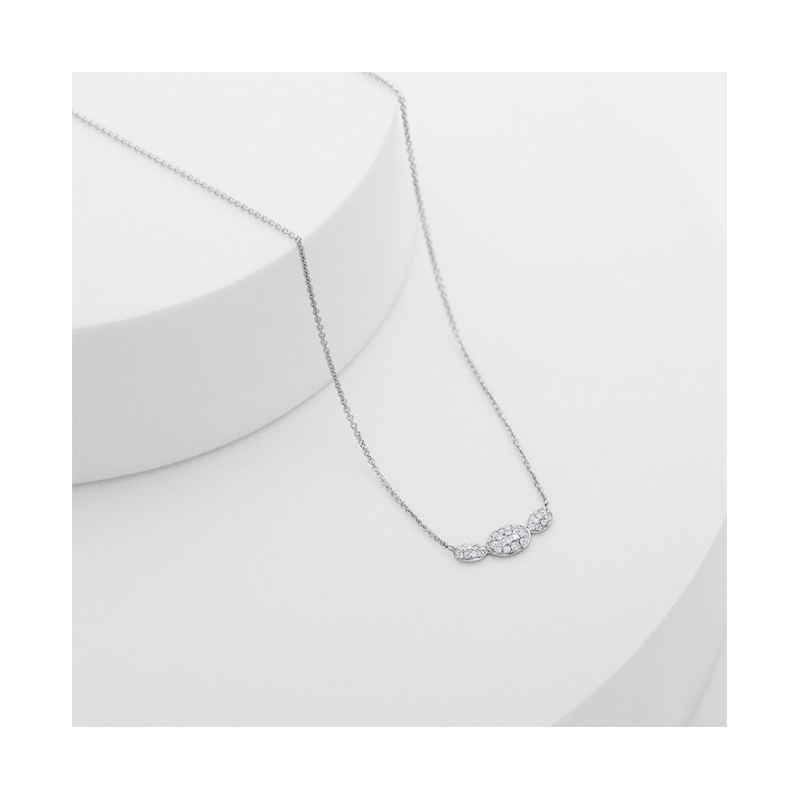 Verwöhne dich oder deine Lieben mit einem Hauch von Luxus: CHRIST Schmuck kombiniert elegante Designs mit hochwertigen Materialien, die auch noch nach Generationen begeistern - wahre Schätze fürs Leben! Edle Collierkette aus 585 Weißgold von CHRIST, der perfekte Begleiter für jeden Tag! Glitzerndes Highlight sind die strahlenden Diamanten, die das Licht einfangen und die Blicke auf sich ziehen. Sie ist eine mittellange Kette, lässt sich durch eine Zwischenöse variabel mit 42 cm bis 45 cm tragen und vielseitig kombinieren. So passt sie zu vielen Styles und zu zahlreichen Ausschnittformen. Für ein besonders edles, glänzendes Finish sorgt die polierte Oberfläche. Der Federring dieser Kette ermöglicht ein einfaches Anlegen und sicheres Tragen.