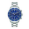Alles zusammen ergibt eine Edelstahl-Uhr in klassischem, sportlichem Look. die Lünette ergänzt sich harmonisch dazu. Die Leuchtindizes sorgen auch bei schwierigen Lichtverhältnissen auf dem Ziffernblatt in Blau für hervorragende Ablesbarkeit, die Leuchtzeiger aus hell strahlender Leuchtmasse heben sich klar davon ab. Als Chronograph verfügt auch diese Certina über die Komplikationen Stoppfunktion sowie Totalisatoren. Den aktuellen Tag gibt die Datumsanzeige an. Stets guten Durchblick garantiert das kratzfeste, extrem harte Saphirglas.
