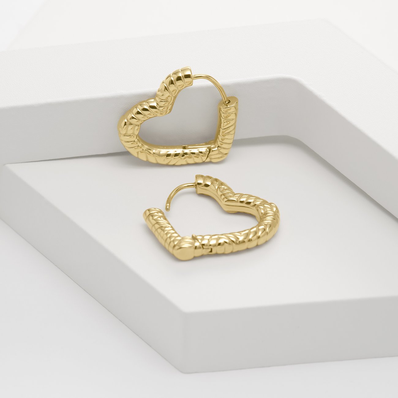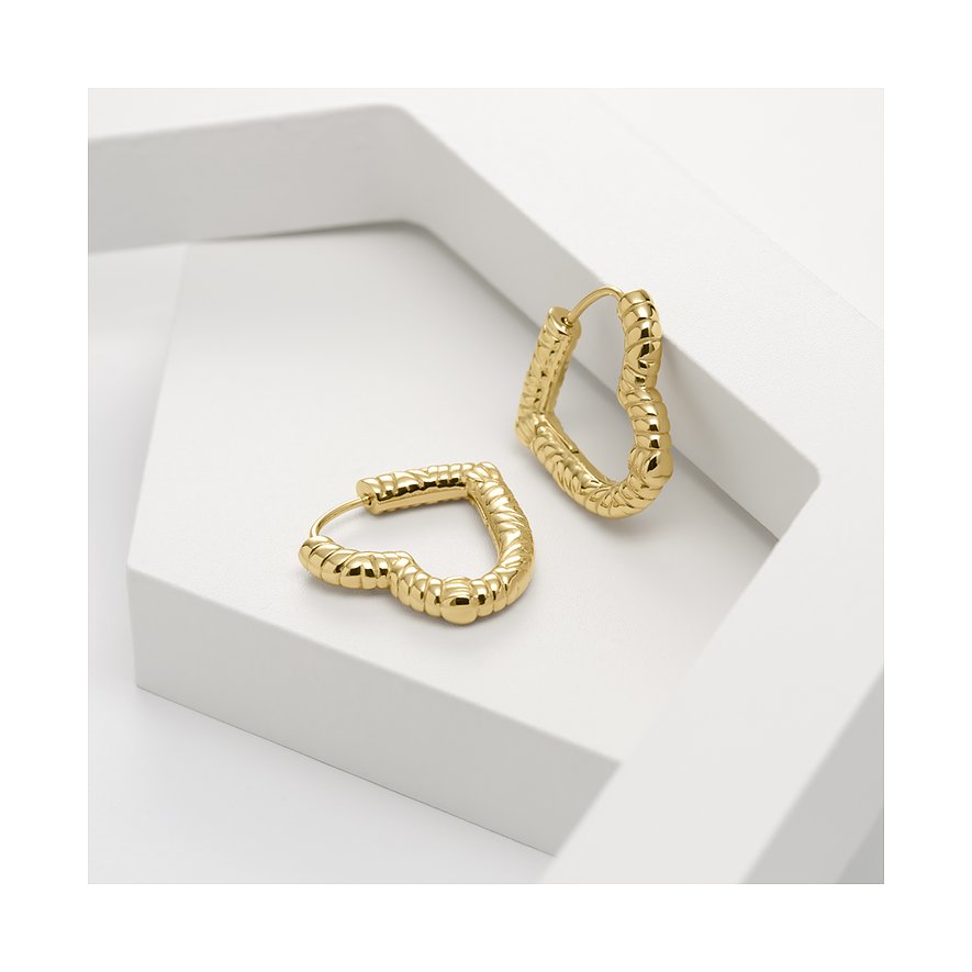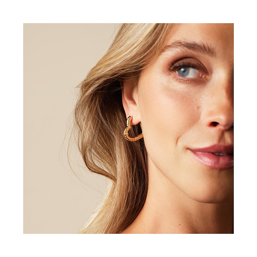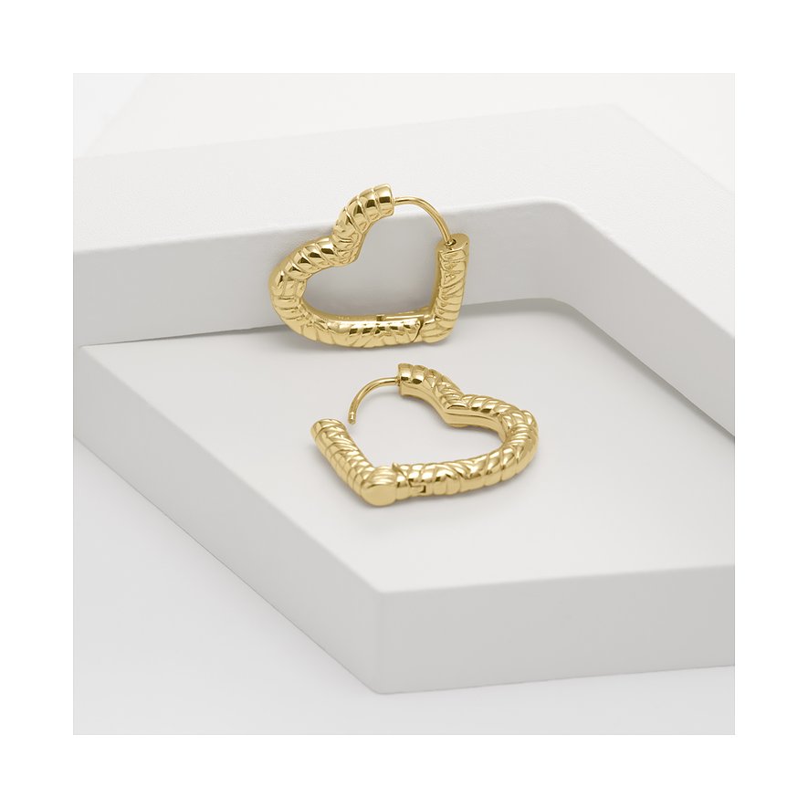 Modern und gleichzeitig romantisch? Das geht, wie diese Ohrringe aus goldfarbenem Edelstahl unter Beweis stellen. Die Accessoires von Guido Maria Kretschmer zaubern Herzen an deine Ohren. Ihre unregelmäßige Oberfläche verleiht ihnen dabei einen besonders stylishen, modernen Touch. Damit passen sie hervorragend in dein Schmuckkästchen, wenn du legere Looks liebst und dich gleichzeitig von deiner romantischen Seite zeigen möchtest.