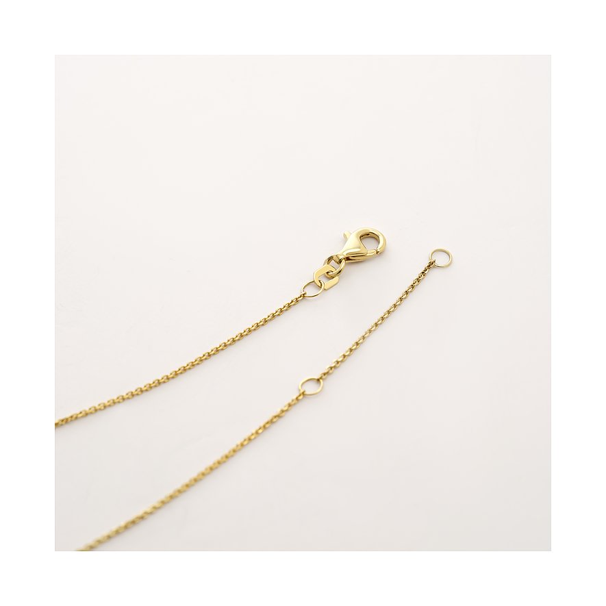 Diese Kette aus 585er Gelbgold verbindet klassisches Material mit einer modernen Anhängerform. Das hochglanzpolierte Gold bringt einen warmen Schimmer zum Ausdruck und rahmt den Anhänger elegant ein.