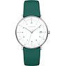 Die max bill Damenuhr zaubert bei jedem Blick aufs Handgelenk ein Lächeln ins Gesicht. Ihr Gehäuse aus erstklassigem Edelstahl verleiht jedem Outfit im Nu eine ästhetische Note. Das grüne Leder-Armband sorgt nicht nur für angenehmen Tragekomfort, sondern rundet auch das exklusive Erscheinungsbild der Uhr perfekt ab.