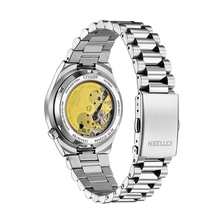 Das Citizen-Automatikwerk ist ein zuverlässiges und präzises Uhrwerk. Der bewegliche Rotor wird durch die täglichen Bewegungen angetrieben, die das Uhrwerk beim Tragen ausführt - so ist kein manuelles Aufziehen erforderlich. Dank der 42-stündigen Gangreserve ist die Uhr zuverlässig und präzise, auch wenn sie mal nicht bewegt wird. Händewaschen und Baden sind dank einer Wasserdichte von 5 bar kein Problem. Die Sicherheits-Faltschließe verspricht nicht nur sicheren Halt, sondern auch gute Verstellbarkeit.
