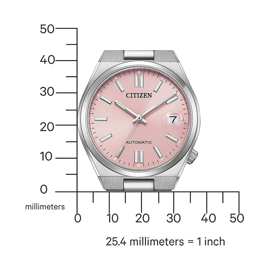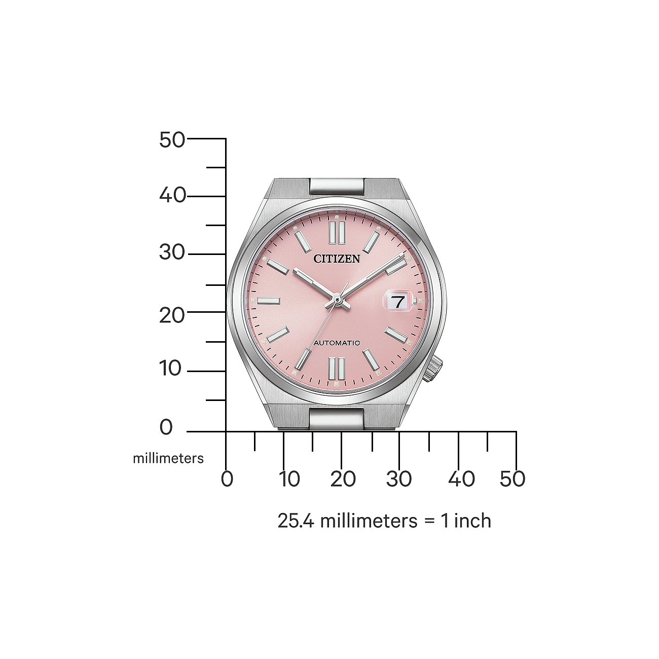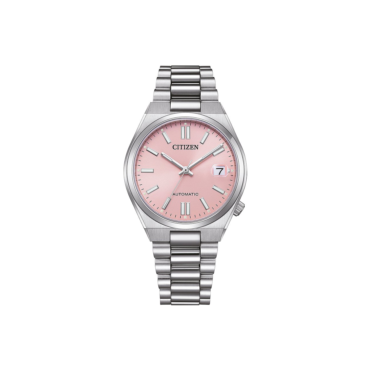 Das Gehäuse hat einen Durchmesser von 37 mm und ist deshalb perfekt für schmale Handgelenke geeignet. Das rosa Zifferblatt mit den Markierungen sorgt für noch mehr Chic. Ein strapazierfähiges Saphirglas übernimmt den Schutz des Zifferblatts. Dieses synthetische, äußerst hochwertige Material ist so gut wie nicht zu zerkratzen und unempfindlich gegen Schläge und Stöße.