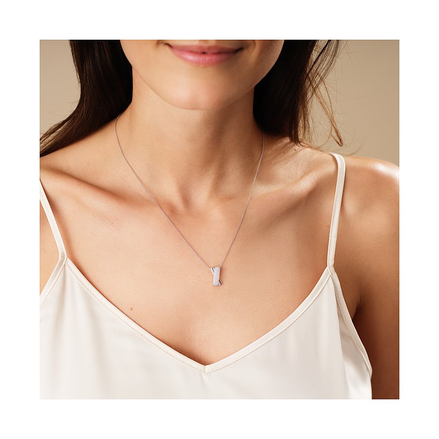 Der Anhänger im stilvollen Cross-Design ist mit 42 Diamanten im Brillantschliff besetzt, die zusammen ca. 0,351 Karat ergeben. In feiner Pavéfassung arrangiert, strahlen die edlen weißen Steine mit intensiver Brillanz und verleihen dem Schmuckstück eine luxuriöse Note. Mit 1,5 cm Länge und 0,8 cm Breite wirkt der Anhänger elegant und zugleich markant.