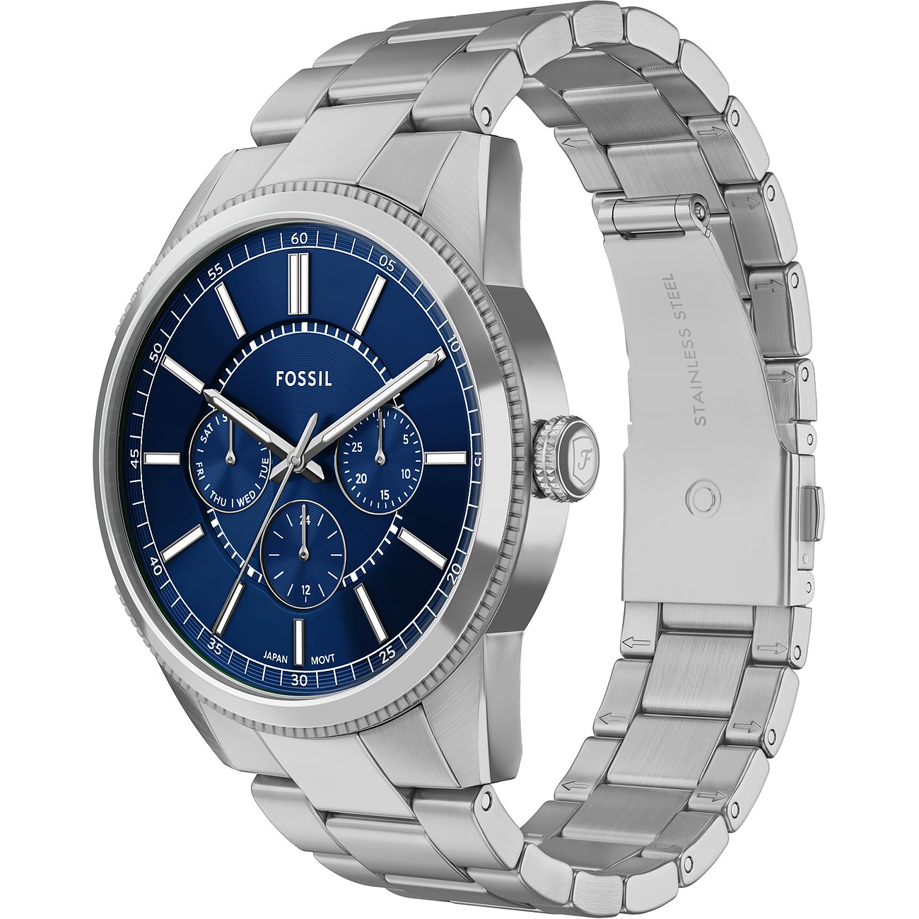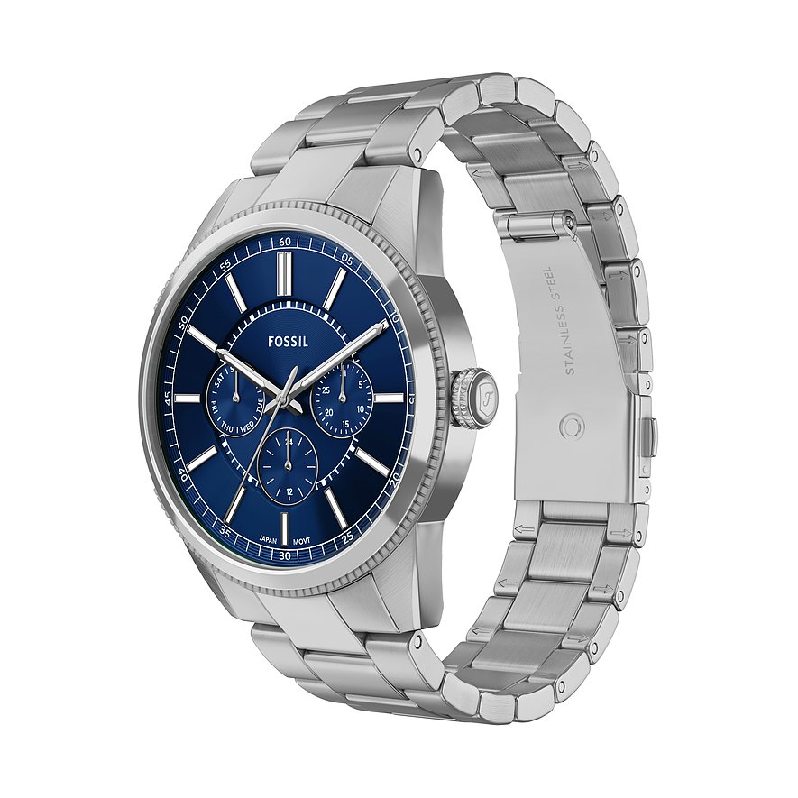 Allen, die mehr als nur die Zeit ablesen wollen, empfehlen wir diese Edelstahl-Multifunktionsuhr für Herren. Das glänzende Armband aus Edelstahl sorgt für zeitlosen Charme. Sowohl das Gehäuse als auch das Armband der Fossil Pearson kommen in Silber daher, wozu das blaue Ziffernblatt harmonische Akzente setzt.