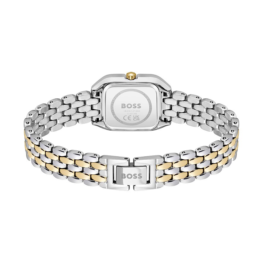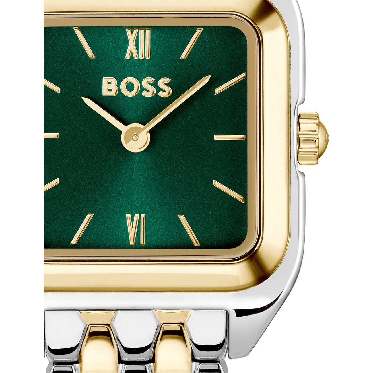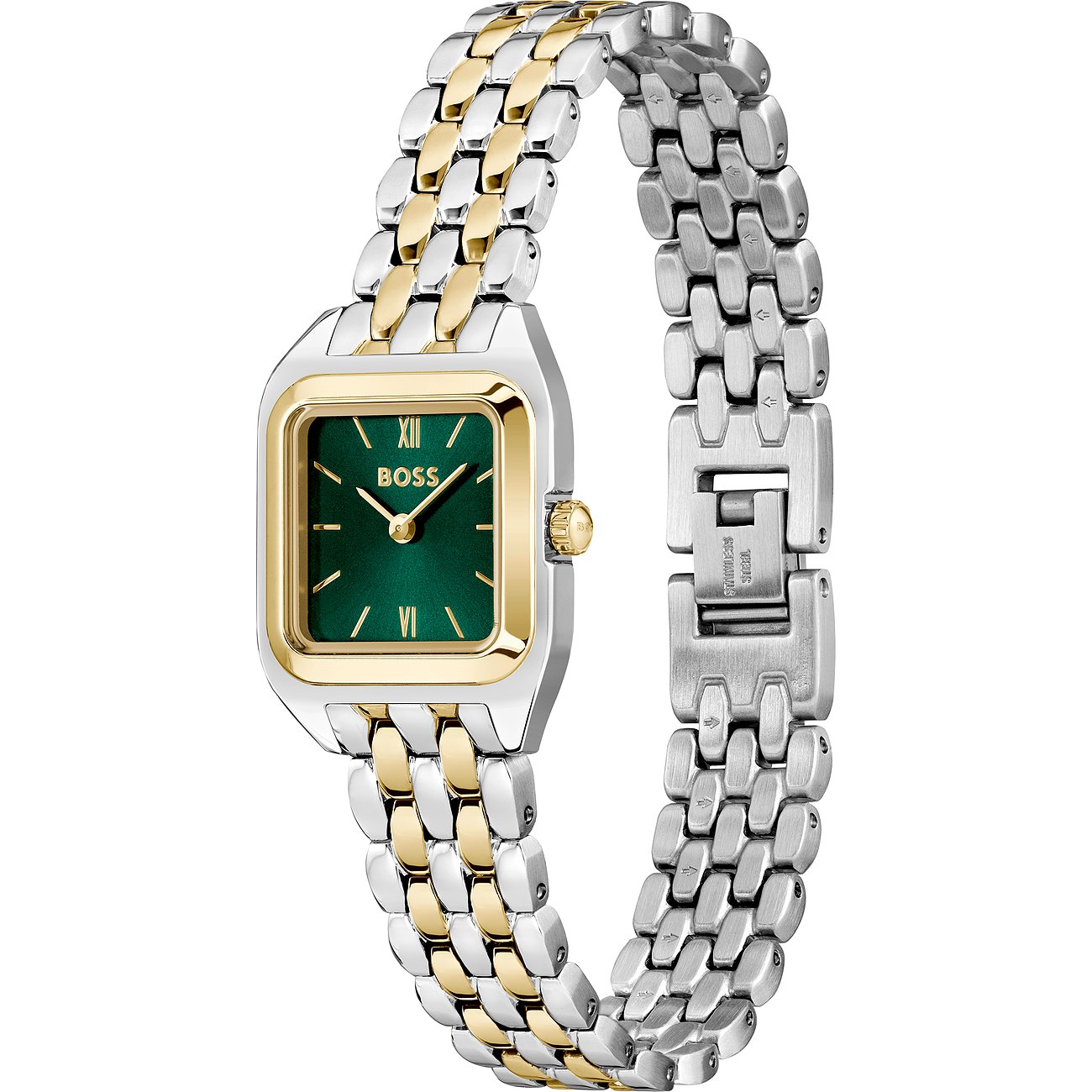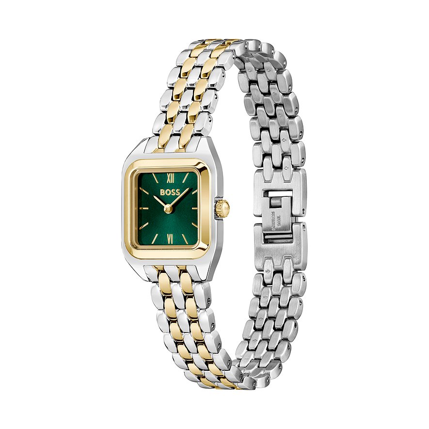 Diese sportlich-elegante Uhr am gleichermaßen schicken wie robusten Edelstahl-Band ist die perfekte Wahl für jede Frau, die auf der Suche nach einem zeitlosen Klassiker ist. Armband und Gehäuse der Boss Mae Petite sind beide mehrfarbig, während das Ziffernblatt in Grün einen besonderen Akzent setzt.