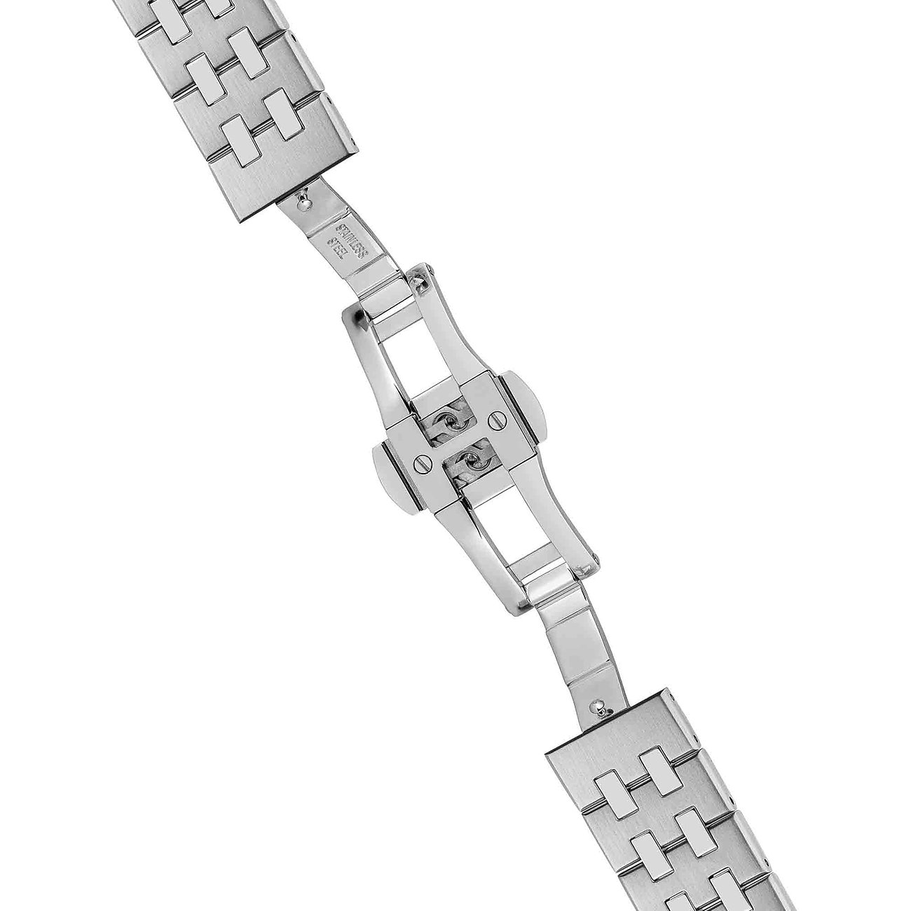 Das Uhrenglas aus Mineralglas bietet eine klare Sicht und hält problemlos den gewöhnlichen Strapazen im Alltag stand. Durch das Sichtfenster im Gehäuseboden erhält man spannende Einblicke in die Arbeit des Uhrwerks. Dieser Zeitmesser ist wasserdicht bis zu 50 Meter (5 Bar) und hält so auch Regen, Spritzwasser oder einem wohltuenden Bad mühelos stand. Die Butterfly-Faltschließe des Armbands ist einfach zu handhaben und sorgt für sicheren Halt. Mehr Variabilität geht nicht: Durch das leicht austauschbare Armband lässt sich der Look der Uhr ganz einfach anpassen.