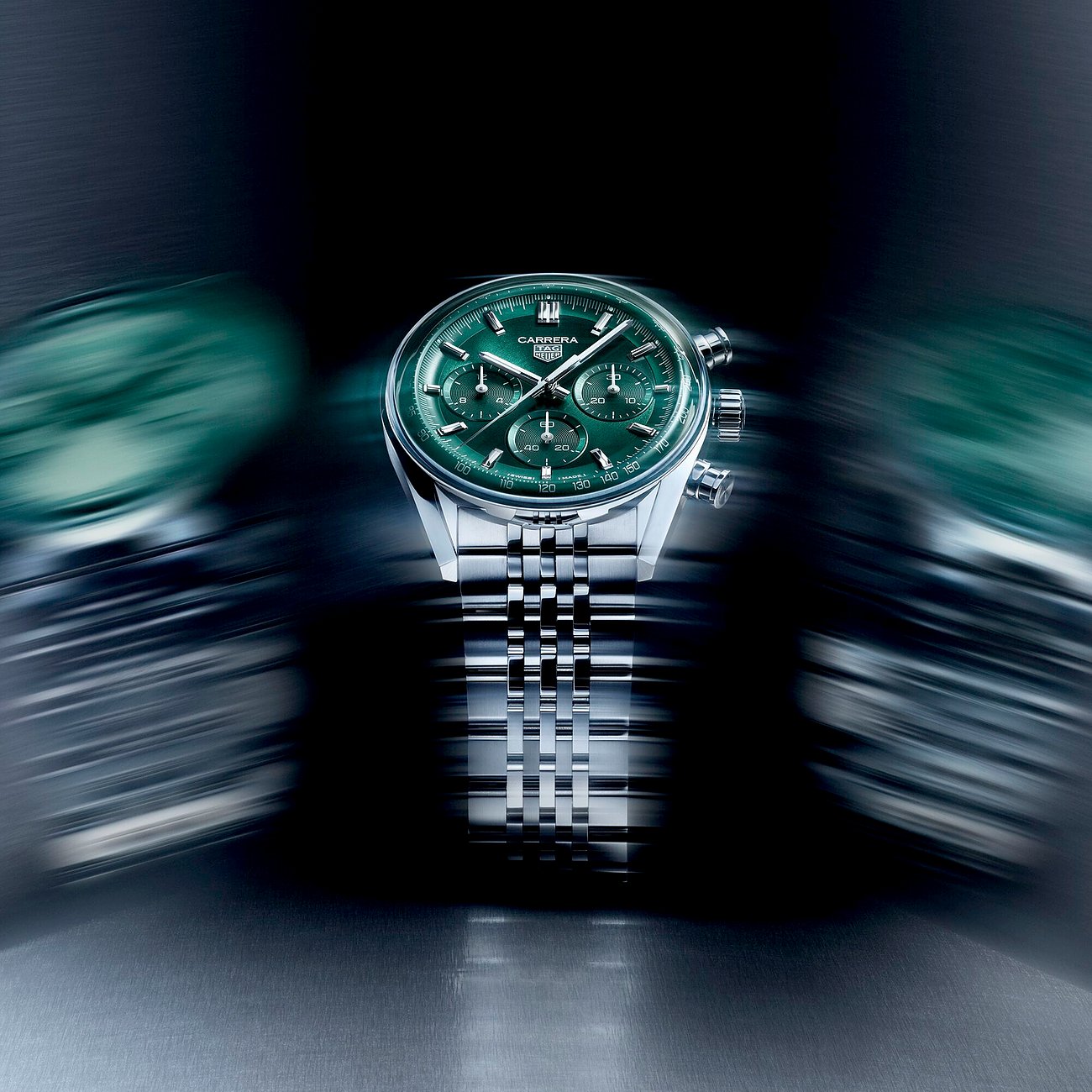 - Totalisatoren, Kleine Sekunde, Verschraubte Krone, Saphirglasboden, Zweizeigeruhr